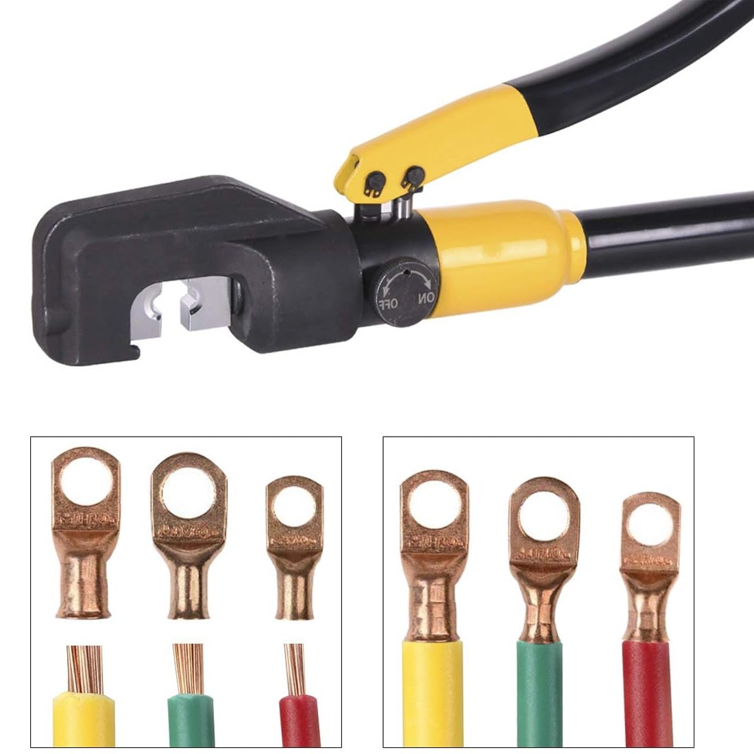 Finether Hydraulic Crimping Tools has 8 pairs of dies that allow you to crimp wires and butt connectors on a wide range of wire sizes. Much easier to use than a pair of hand crimpers. Great for battery and welding cables, power wires, and electrical cables. A durable carry case helps you store all the dies and plier and make them organized so you can carry them anywhere easily.