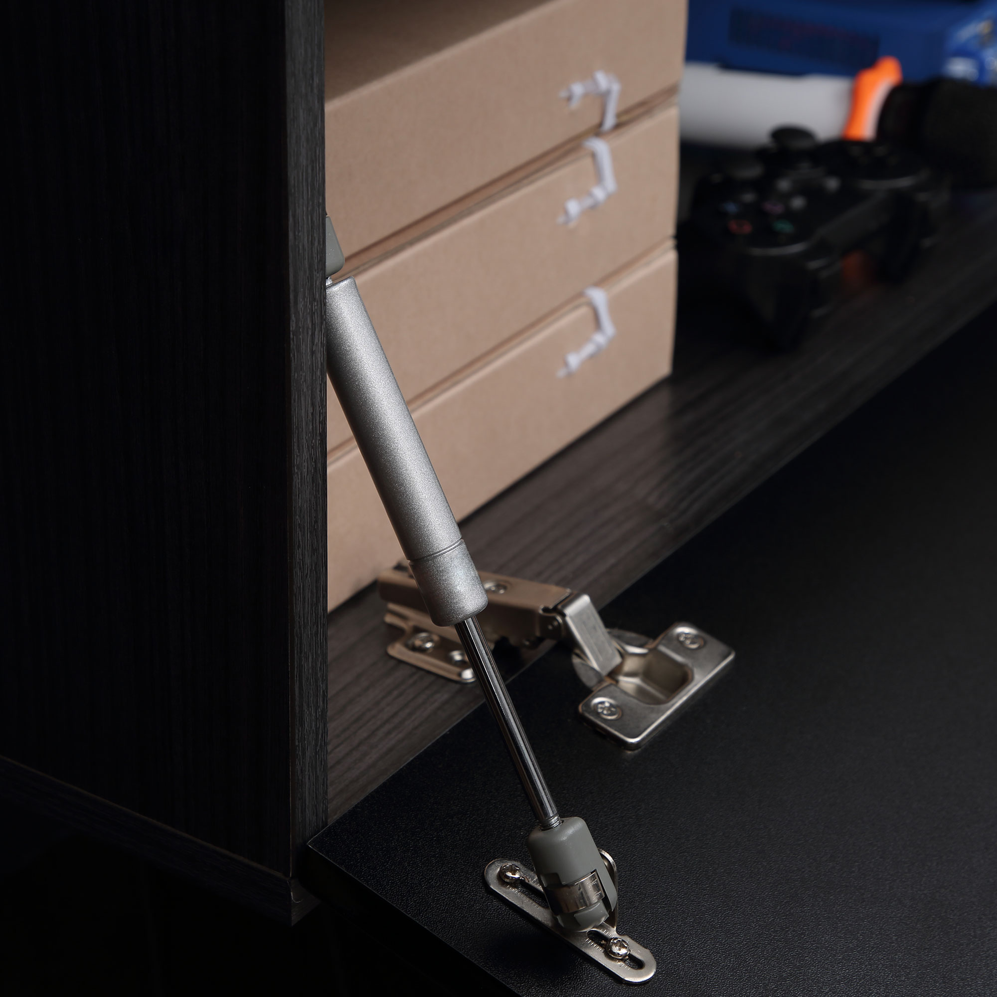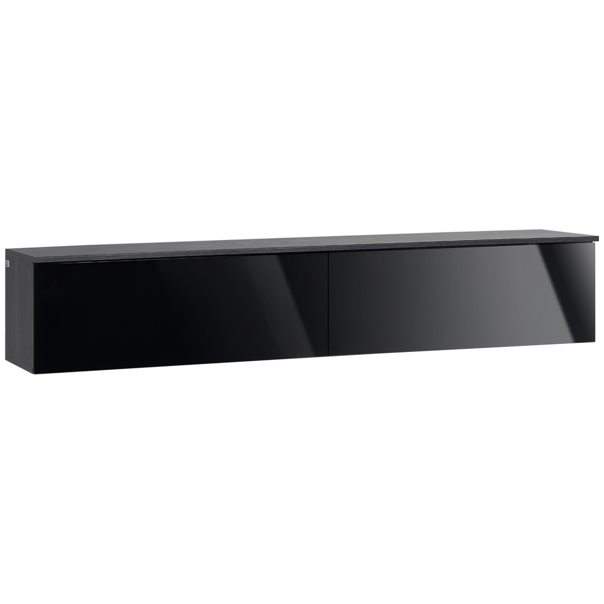 A modern touch for your living room. Do it with this floating TV bench. Fix it your wall and enjoy the style as you relax and watch television or play games. It comes with two cupboards to keep all accessories discreetly stored; the high gloss flip-up door gives it a modern touch. The particle board structure is solid, in a beautiful wood-effect design. Finished with a protective melamine coating.