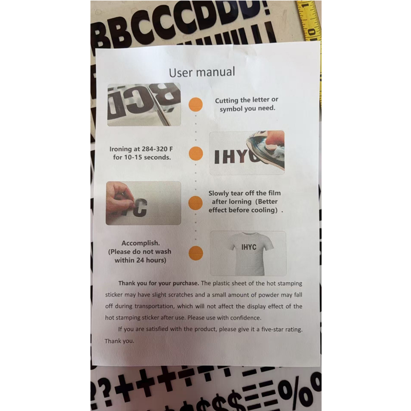 3.The iron-on letters are good decorations for T-shirts,hats, bags, pillows, pants, jeans and other fabrics. They can be applied to form meaningful words, sentences, dates, texts and other content,Free style.Washable, non-fading and acid free.