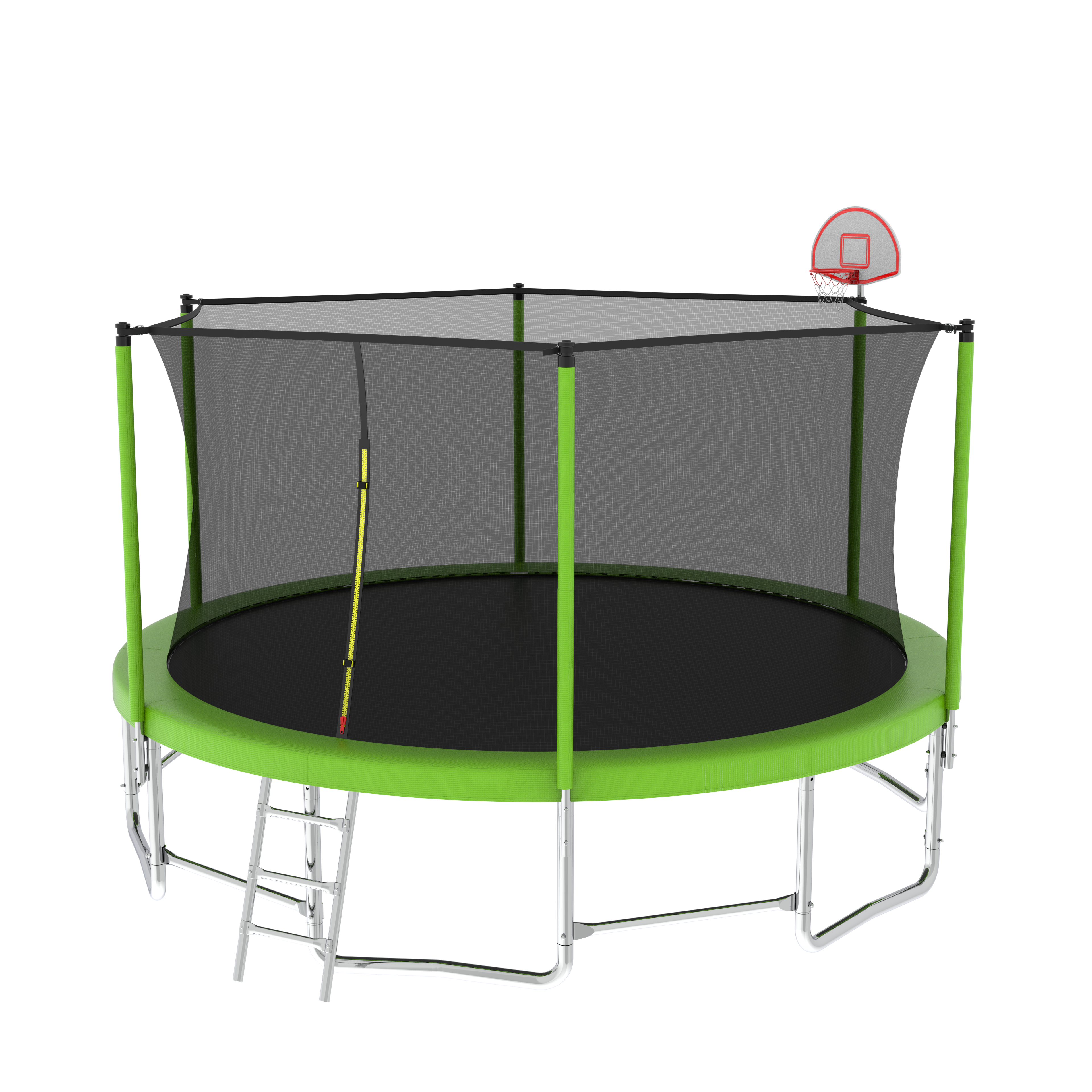 - Solid Structure-6 foam padded poles to support UV-proof safety trampoline enclosure net for maximum safety while jumping. Heavy duty 3-step galvanized steel ladder offers convenient maneuverability in and out of the trampoline.