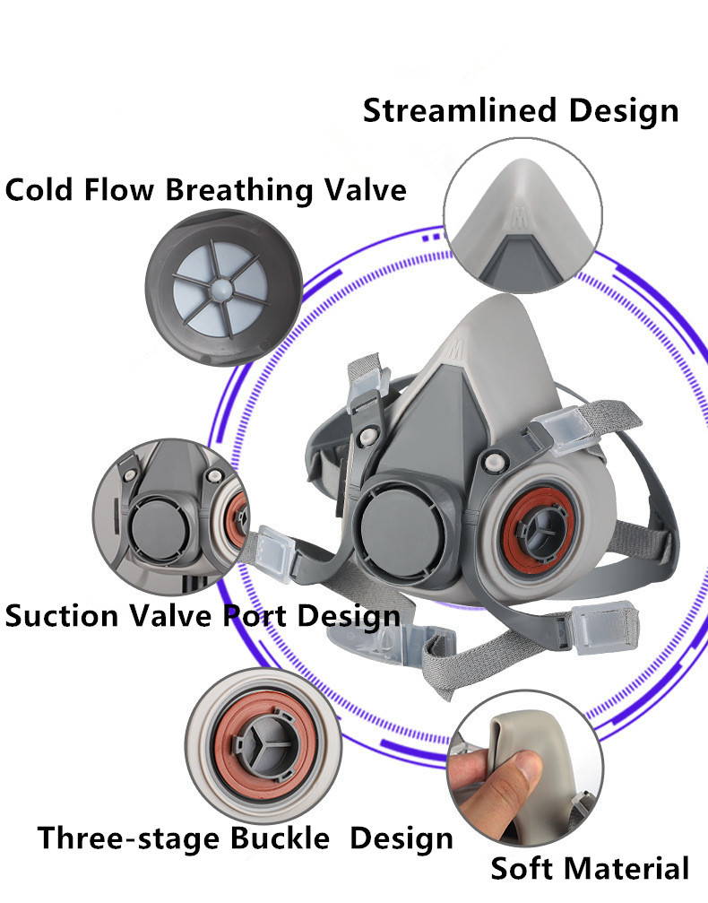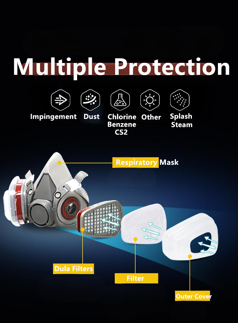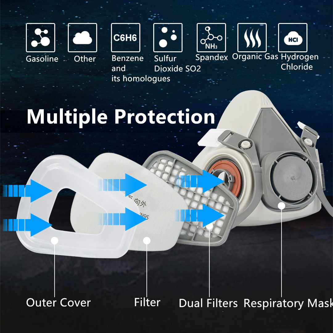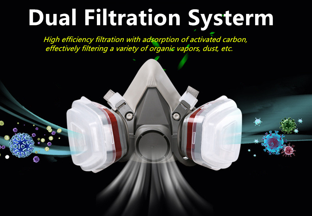 Verschiedene Anwendungen: Die Sicherheitsmaske bietet effektiven Schutz vor Farbe, Bauarbeiten, Chemikalien, Sandung, Polierung, Geruchskontrolle usw.