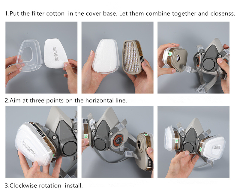 4. Die wiederverwendbare Gesichtsbedeckung verfügt über abnehmbare Filterkästen, die Sie effektiv und bequem vor bestimmten Partikeln einer bestimmten Konzentration schützen. Geeignet für Malerei, Chemikalien, Polierung, Schweiß und Umwelttechnologieschutz.