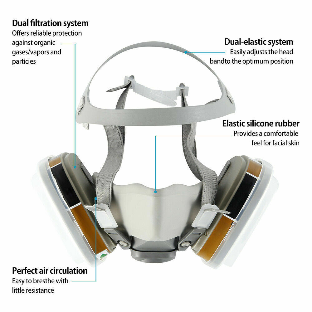 Our high quality reusable gas mask with filter face mask is equipped with multiple head straps to ensure a more comfortable fit and an airtight seal for better workplace safety.
