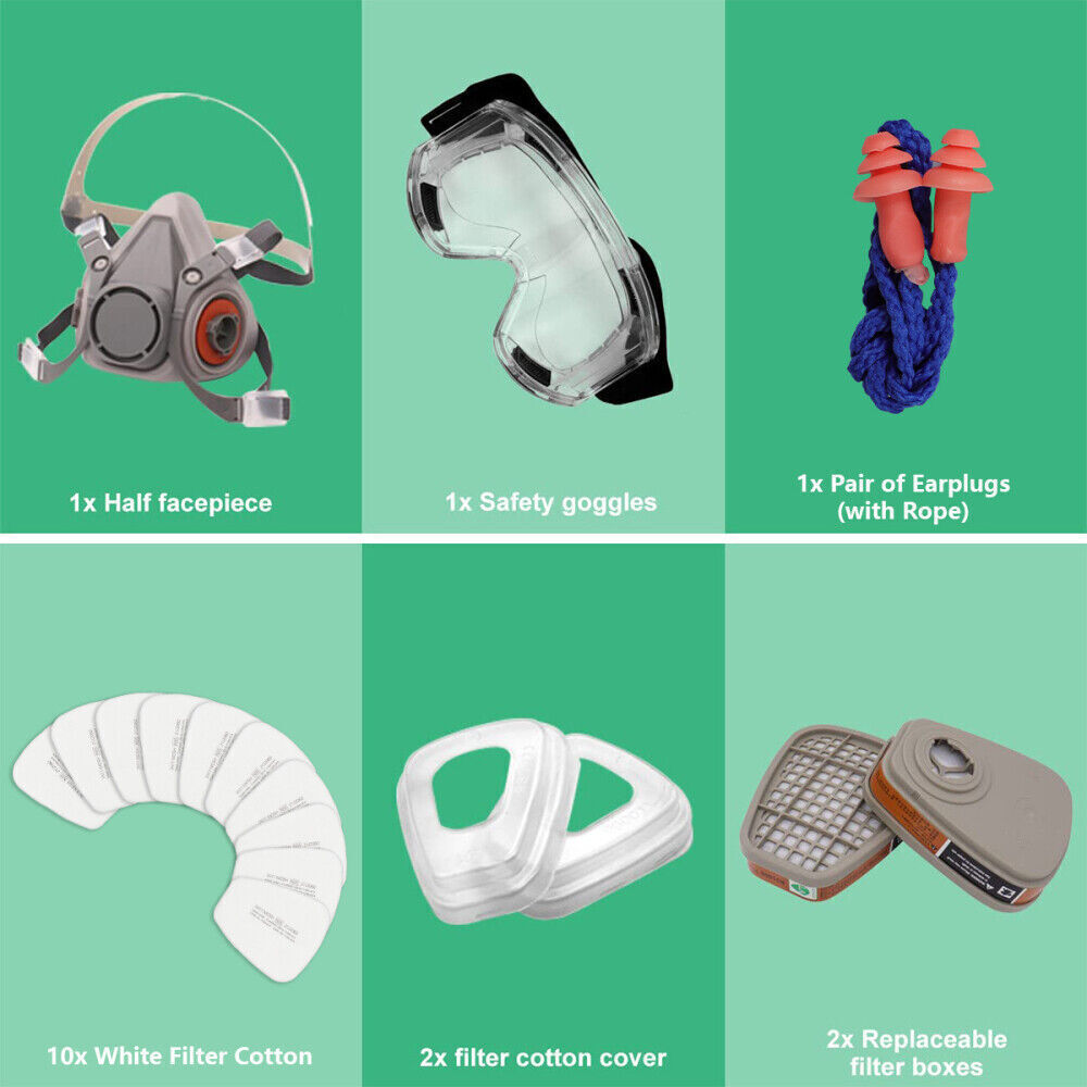 【eye ear protection】 Our professional half facepiece use a double filtration system to effectively block the particles in the air. Goggle can prevent the mist spray and invasion of small substances. Earplugs protect fragile eardrums during loud work and are suitable for most head sizes. This half facepiece is designed for tight and comfortable wear.