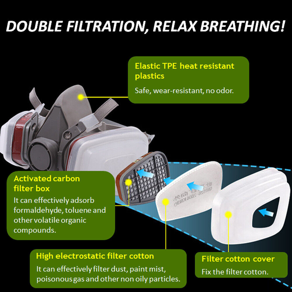【Quality and safe material】 The chemical respirator is made of high quality silicone, which is tightly sealed, soft, durable and healthy. The soft silicone does not make your facial skin uncomfortable.
