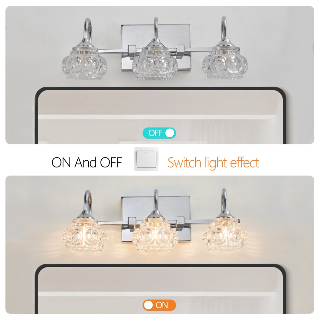 Vintage and Modern fusion: The lamp design blends a vintage glass shade with a modern nickel-plated light stand to suit a variety of decorative styles in the bathroom, both classic and stylish.High quality materials: The lamps are made of high quality glass and metal materials to ensure lasting durability, rust prevention and corrosion protection.Multi-functional application scenario: This lamp is not only suitable for bathrooms, but also suitable for dressing rooms, toilets and other places, providing flexible lighting solutions.Easy installation: simple design, easy installation, no need for professionals can be easily completed, saving the user's time and installation costs.