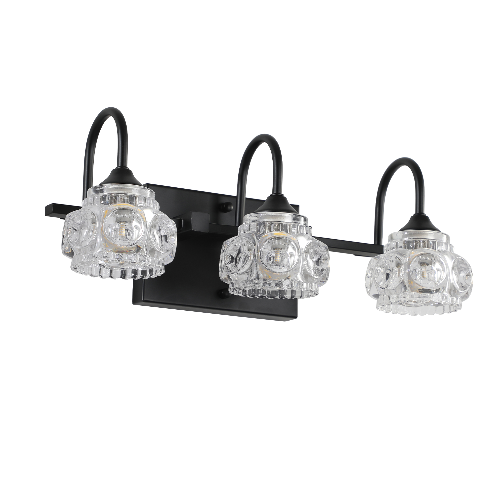 Elegant crystal glass lampshade: The lamps are equipped with high-quality crystal glass lampshades, beautifully designed to add a sense of luxury and sophistication to the bathroom, and the light emits a soft glow after passing through the lampshade, enhancing the atmosphere of the space.Strong black metal bracket: The lamps are made of strong and durable black metal material, with a modern industrial style, while ensuring the durability of the product and long-term stability.Multi-functional application scenario: This lamp is not only suitable for bathrooms, but also suitable for dressing rooms, toilets and other places, providing flexible lighting solutions.Easy installation: simple design, easy installation, no need for professionals can be easily completed, saving the user's time and installation costs.