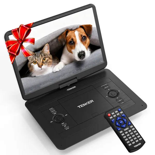 17.9" Portable DVD Player 15.6" HD Swivel Screen 6 Hours 5000mAh Rechargeable Battery Remote Control Dual Speaker TENKER