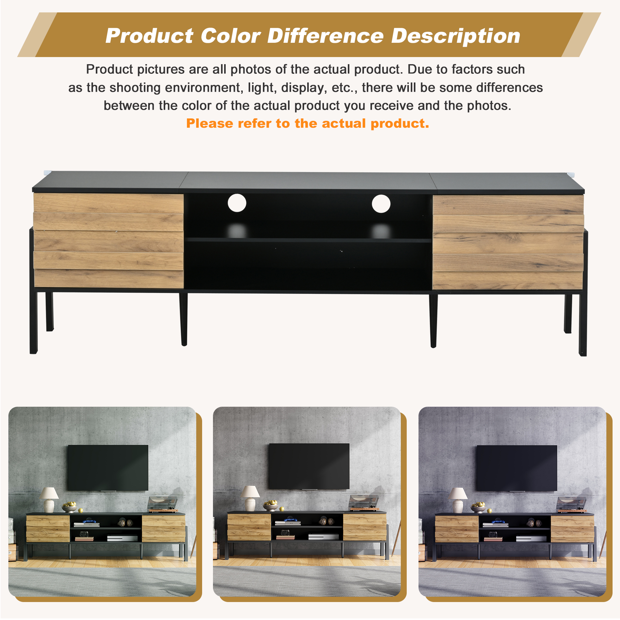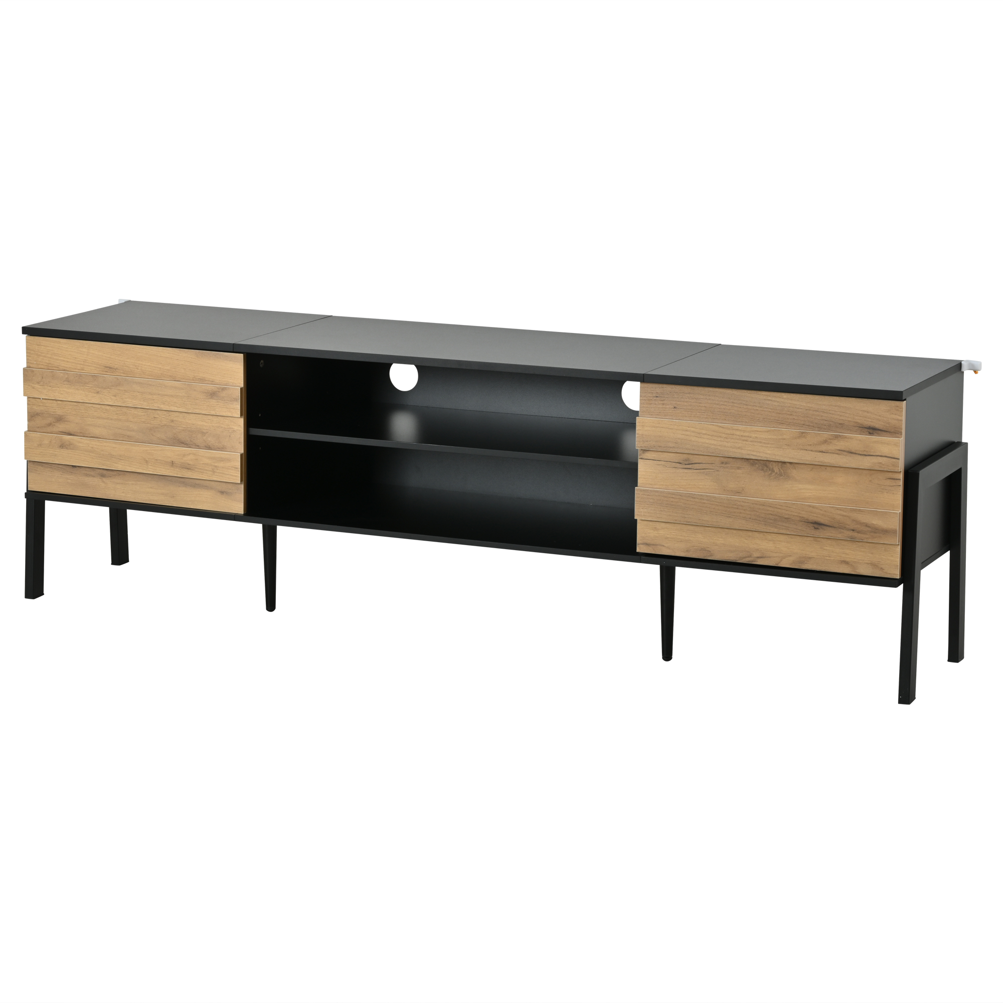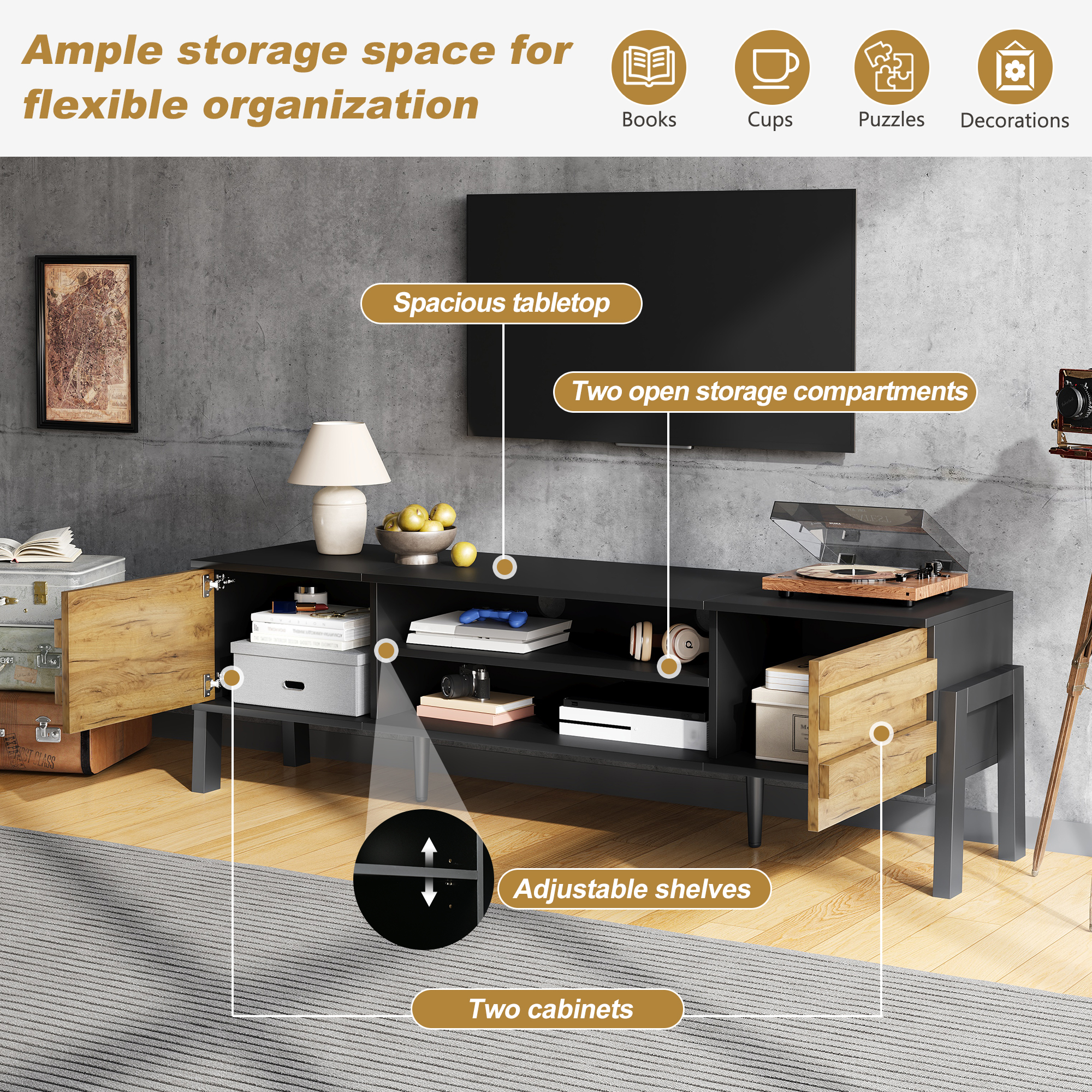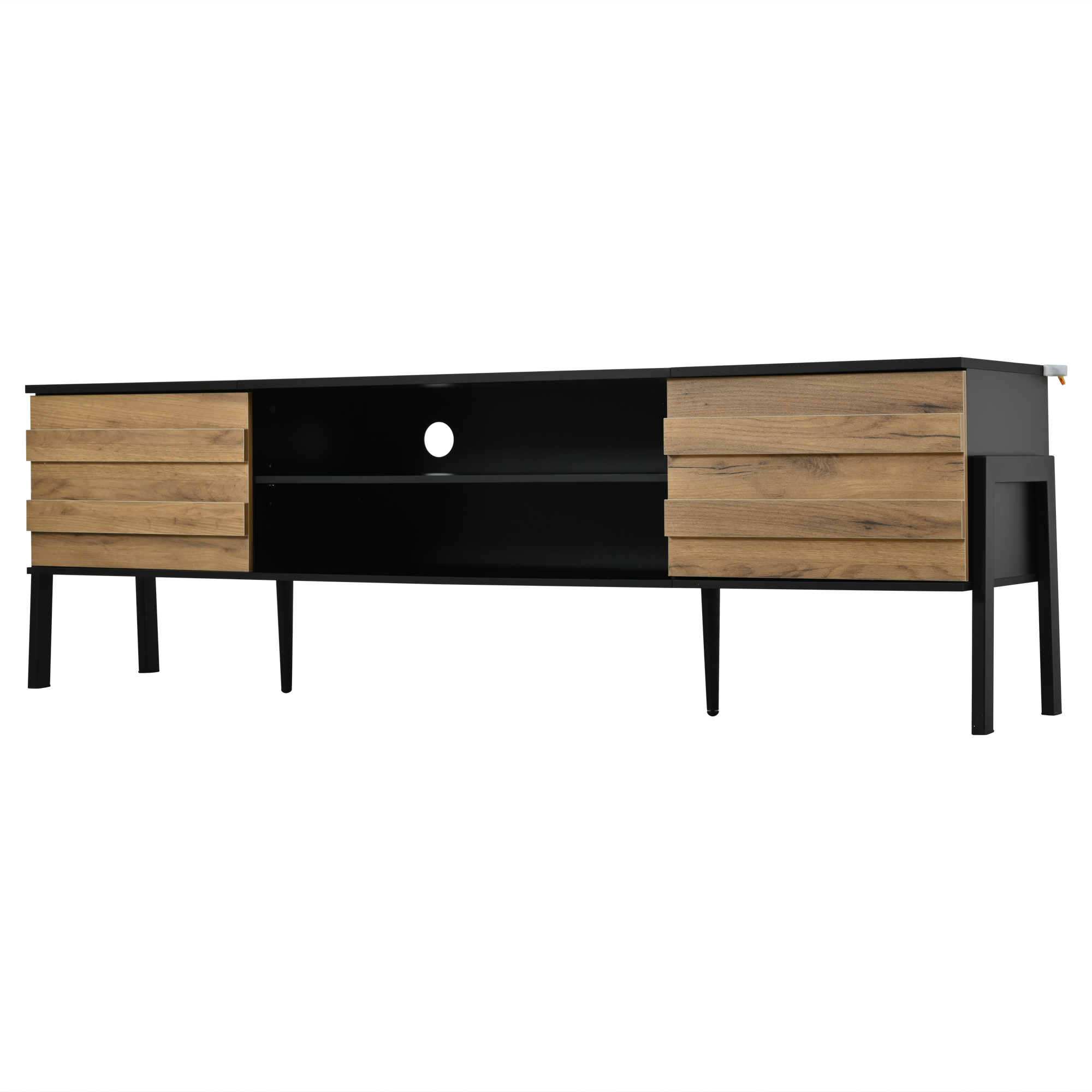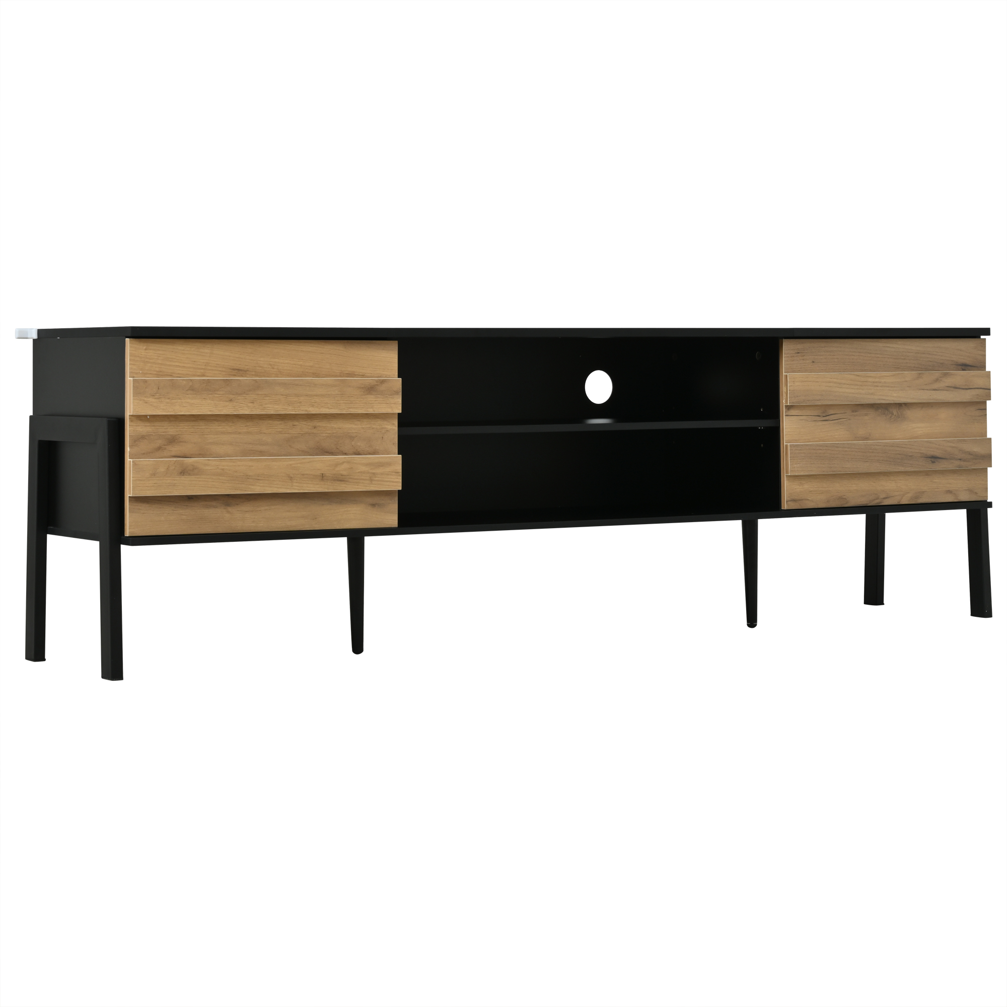 Product Name:175*39.5*53cm TV cabinet, TV board, TV console with 2 cabinets and open storage space, TV table, TV stand, living room cabinet, suitable for TVs up to 70 inches,Natural wood color + black