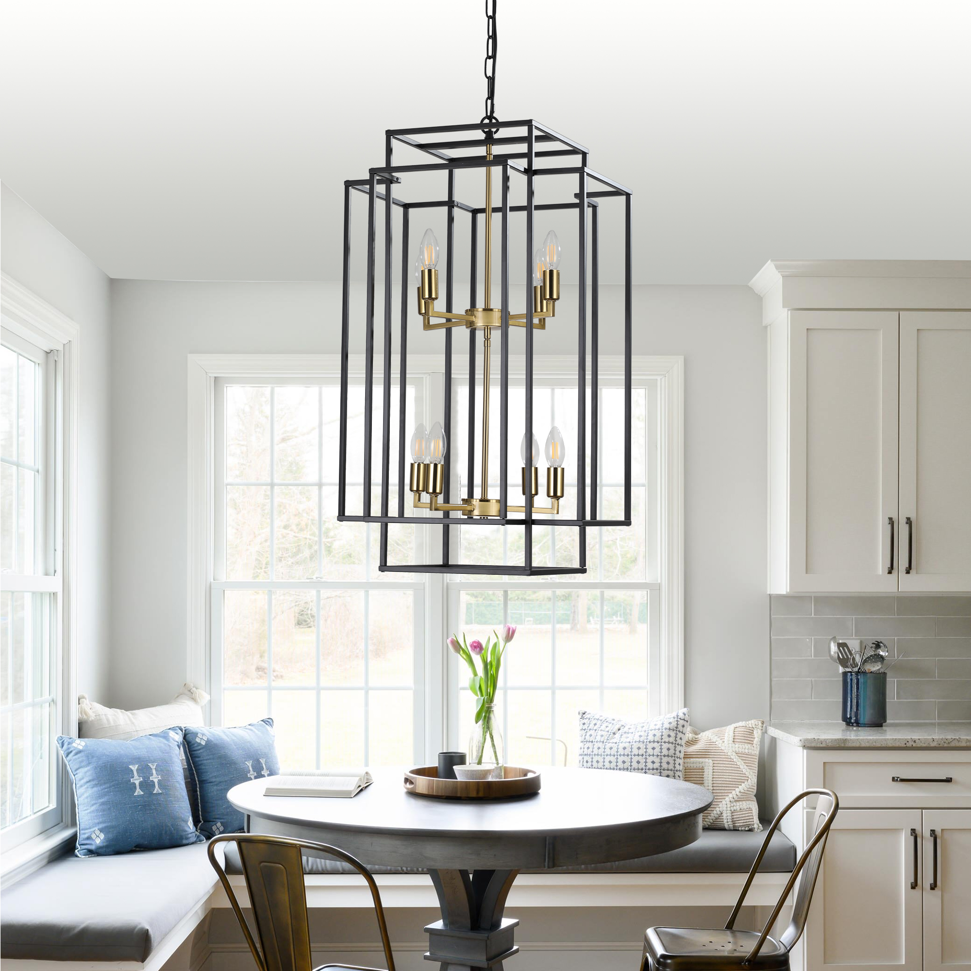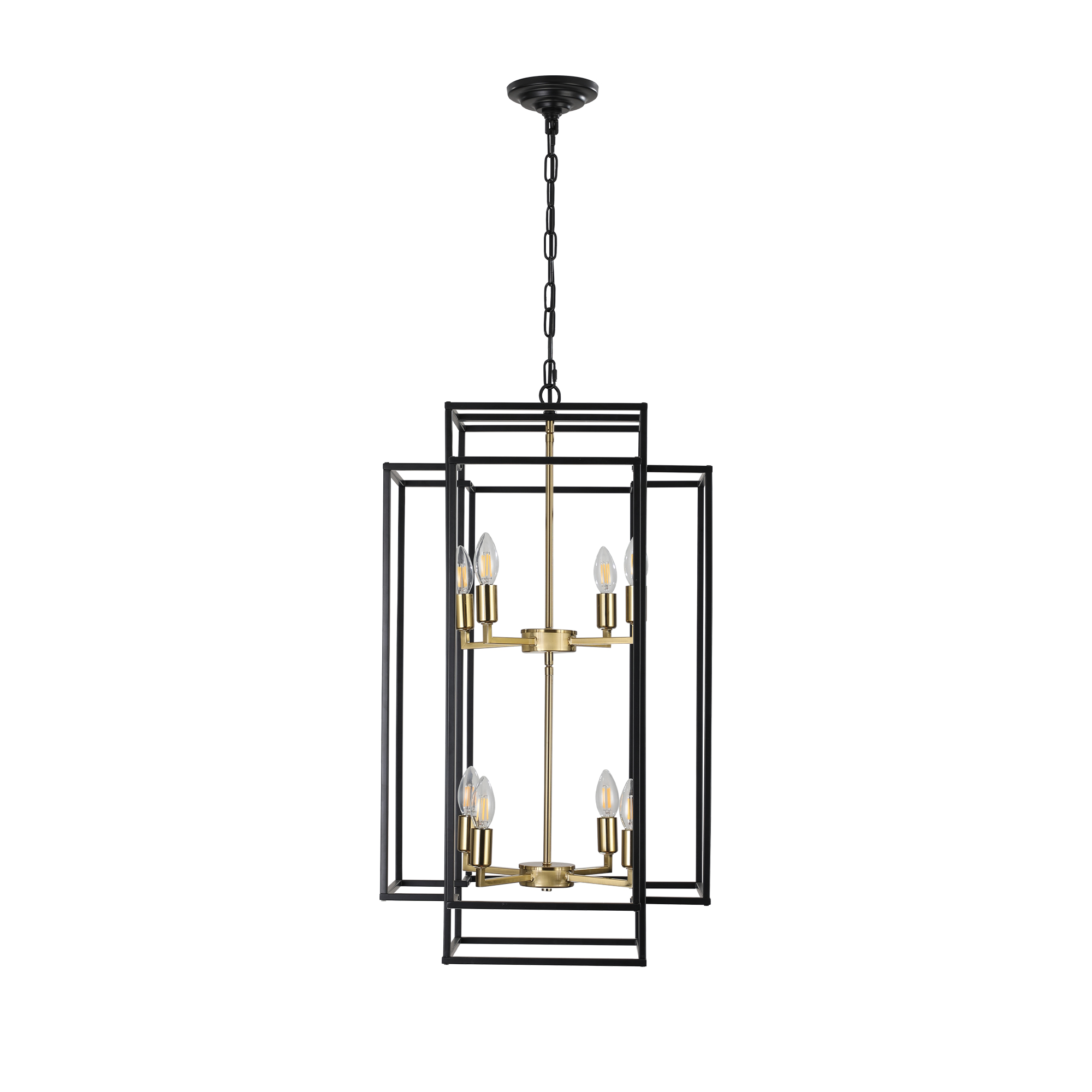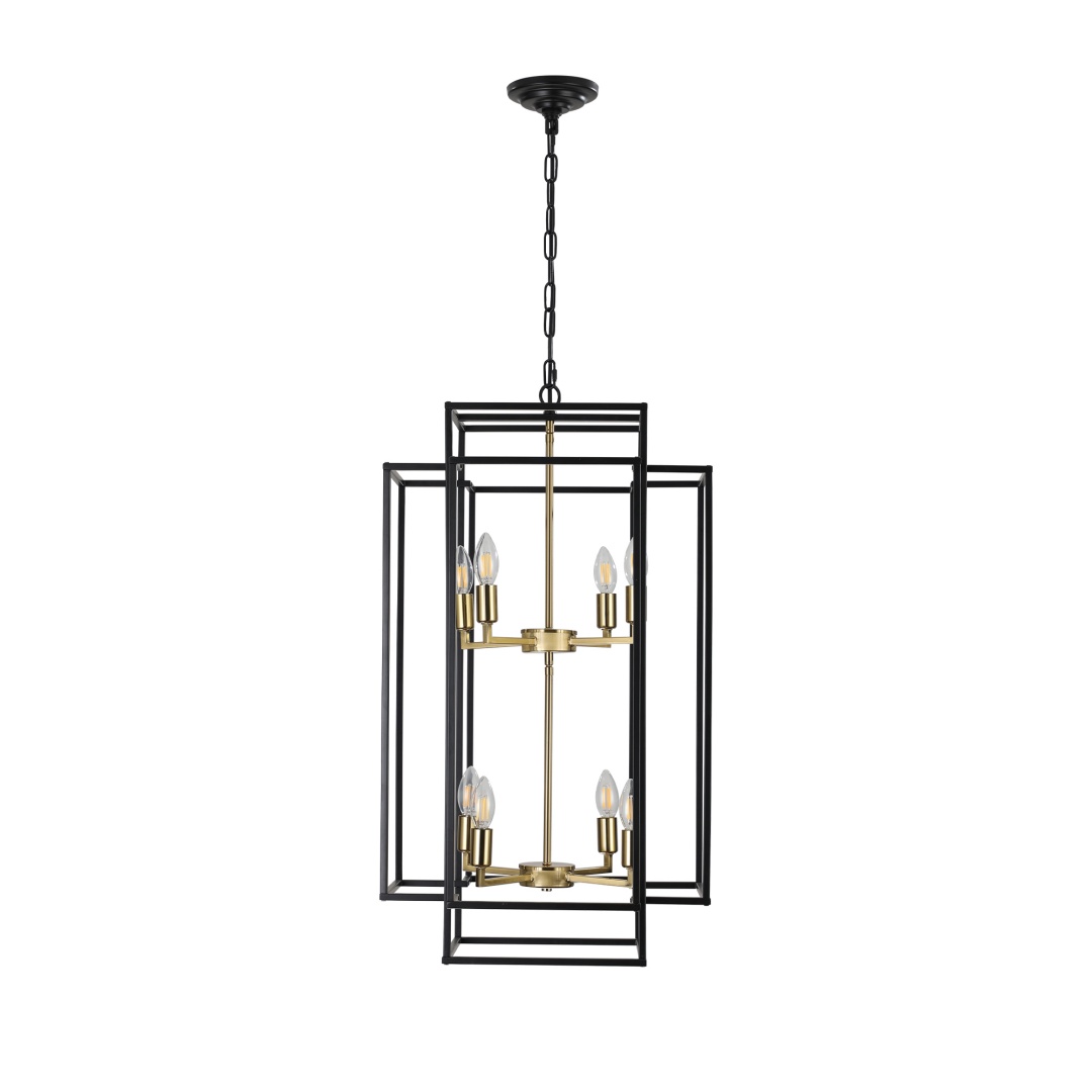 Adjustable Boom & Multi-Scene Applications: The foyer lighting fixtures length of the boom is 60 inches/150 cm. Consists of removable metal rods that allow you to easily adjust the height.Durable Metal Frame: This kitchen island pendant light adds protection to the bulb with a high quality black matte metal frame and heat resistant gold pendant base.E12 Bulbs & Compatible Information: foyer pendant light comes with 8 x E12 lamp holder, Applicable to any E12 bulb, such as LED/CFL, incandescent or fluorescent (Bulb not included).Consists of removable metal rods that allow you to easily adjust the height. foyer chandelier for: living room, room, Hallway, dining room, kitchen island, farmhouse, foyer.