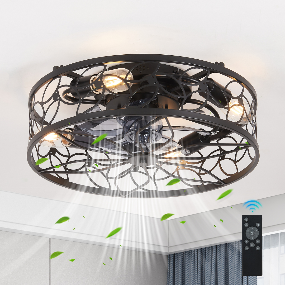Retro Cage Design: This fan light features a classic black retro cage appearance, combined with industrial style elements, giving it both modernity and individuality, suitable for various home styles, especially modern, industrial, rural, and retro spaces.Silent operation: Specially designed fan blades ensure that there is almost no noise during fan operation, allowing you to enjoy refreshing wind without interference, suitable for places such as bedrooms and study rooms that require a quiet environment.Remote control operation: Equipped with a remote control, it is convenient for you to adjust the wind speed, lighting brightness, and switch at any time. You can easily control without standing up, bringing great convenience and comfort.Multifunctionality: Integrating a fan and lighting, it not only provides cool air but also serves as the main light source for the room, making it perfect for various occasions such as living rooms, bedrooms, dining rooms, kitchens, etc.Durable Material: Made of high-quality materials to ensure the long-term service life of fan lighting fixtures, wear-resistant and easy to clean, maintaining long-term aesthetics and performance.