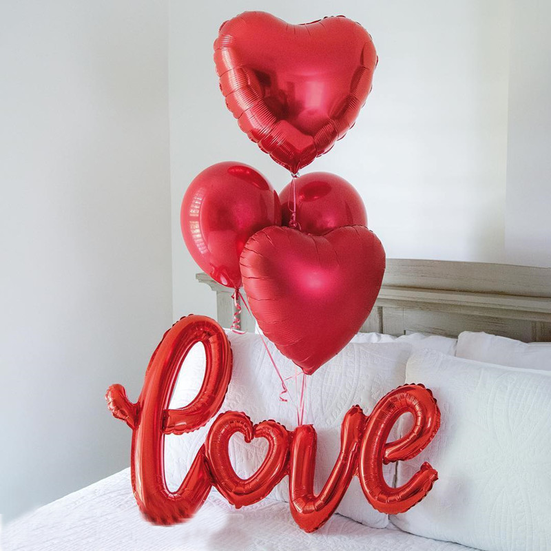 5 18-inch red hearts, 5 18-inch golden hearts,
