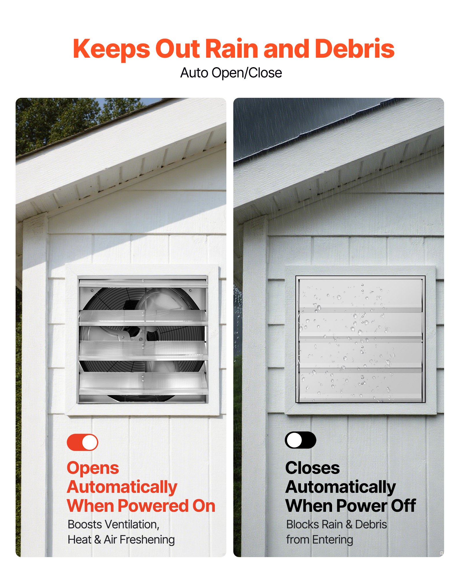 Rain Guard: Shutters open when powered for ventilation and deodorizing, then close when off to block rain and small things, reliable protection for an attic exhaust fan setup