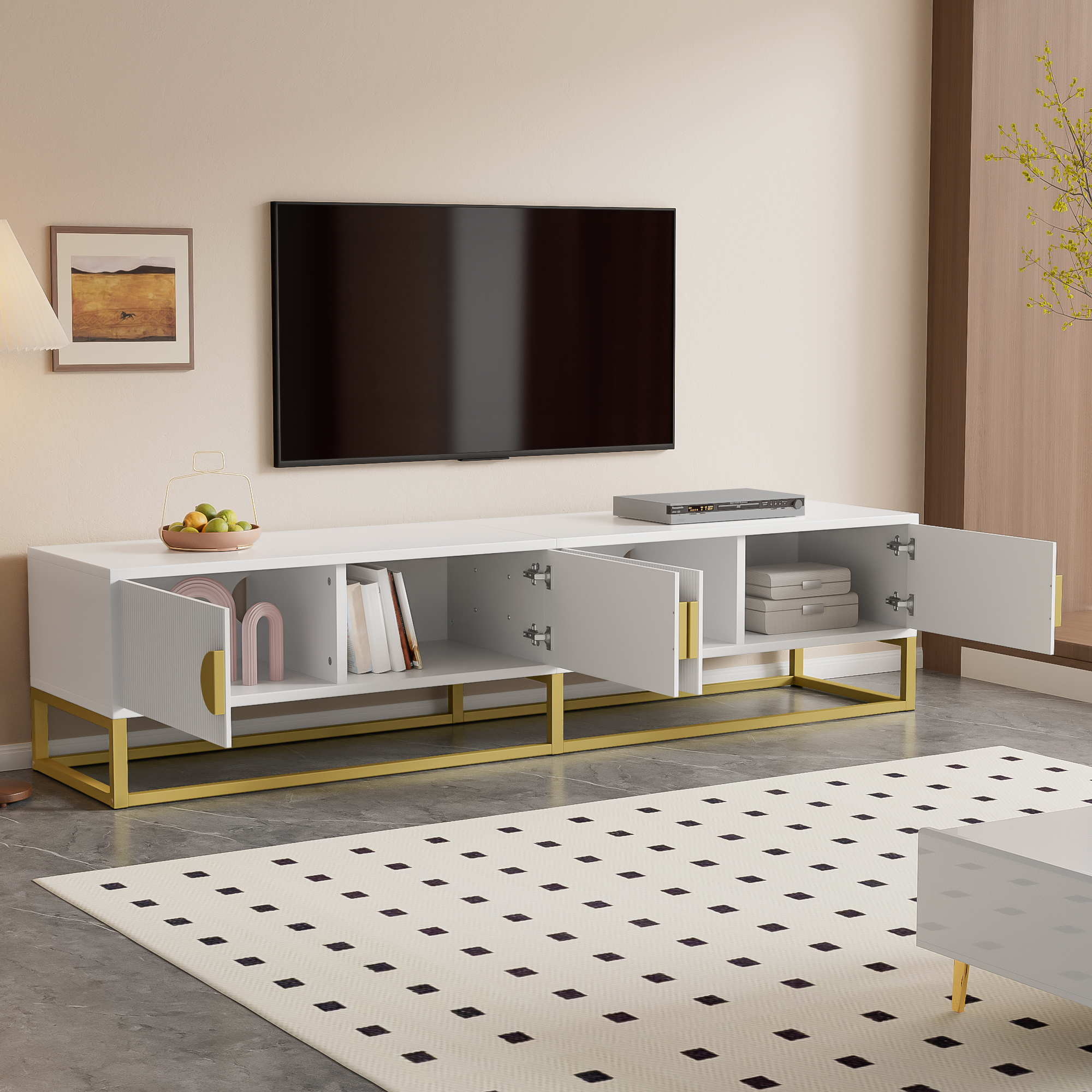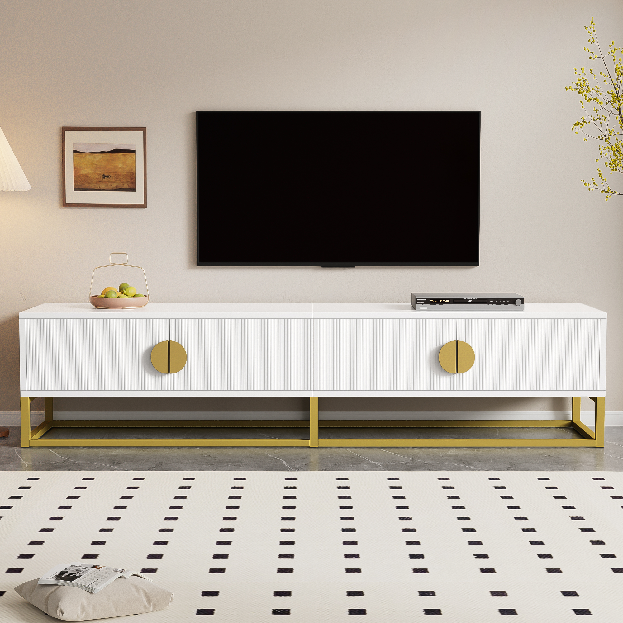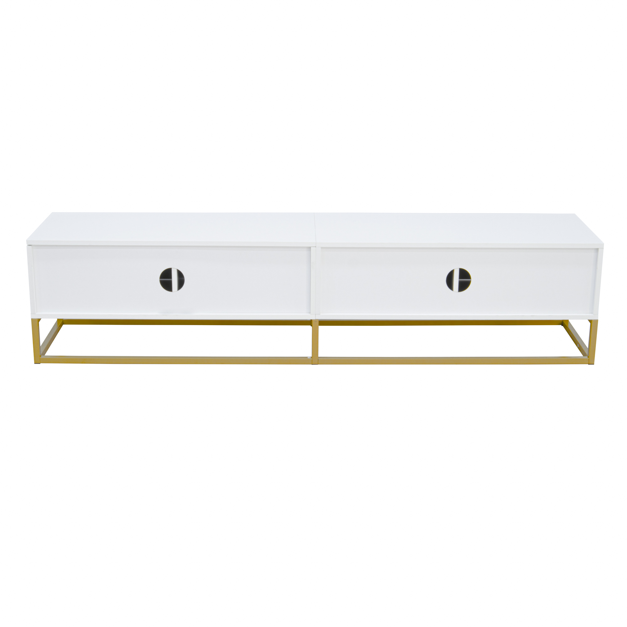 • Modern Design – Elegant TV board in white with refined surface and stylish gold details for a cozy atmosphere.