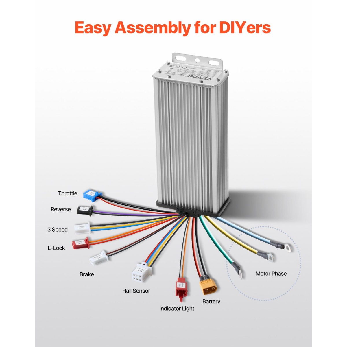 1800W Electric Brushless DC Motor Kit 48V 4500rpm Motor With Upgraded Controller