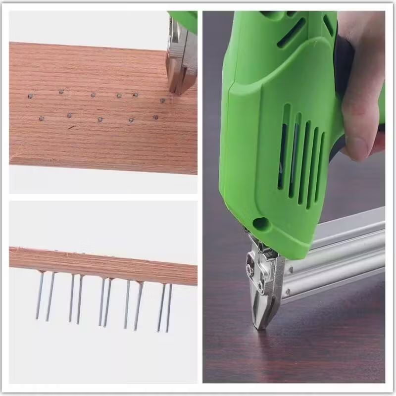 Elevate your woodworking projects with our 1800W Electric Heavy Duty Stapler Nailer Designed for robust performance, this nail gun offers strong penetration into hardwood, ensuring your tasks are completed with precision and efficiency The comfortable handle provides a grip that minimizes fatigue during extended use, while the fast heat dissipation feature prolongs the tool’s lifespan With a wide range of applications, this stapler nailer is a versatile addition to any carpenter’s toolkit