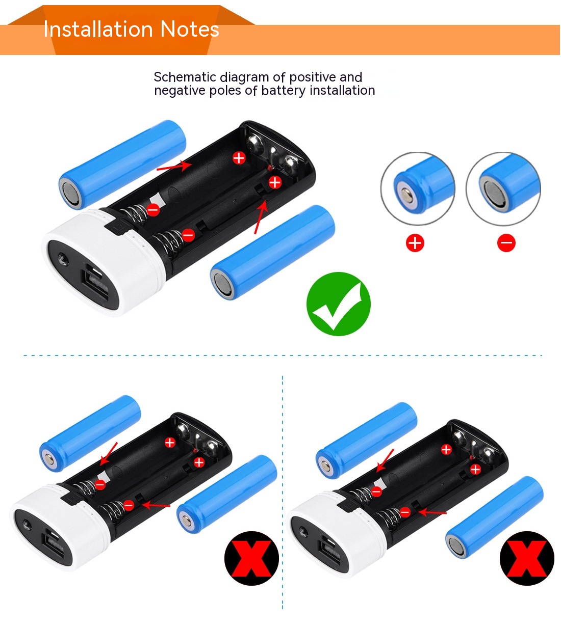 5. Compatible for 2 x 18650 Li-ion rechargeable batteries (not included).