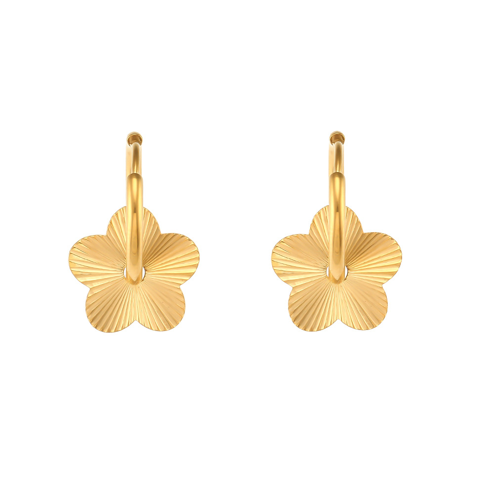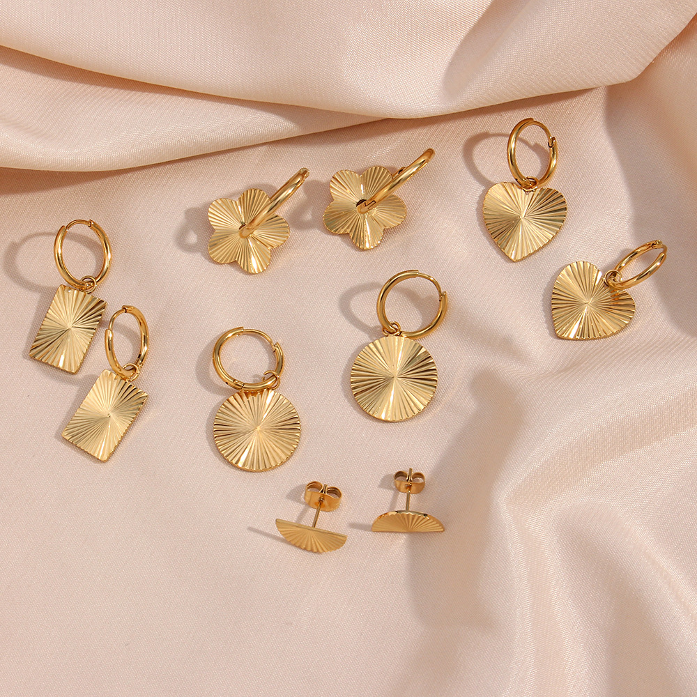 18K Gold Plated Heart Flower Circle Rectangle Burst Hoop Stainless Steel Earrings