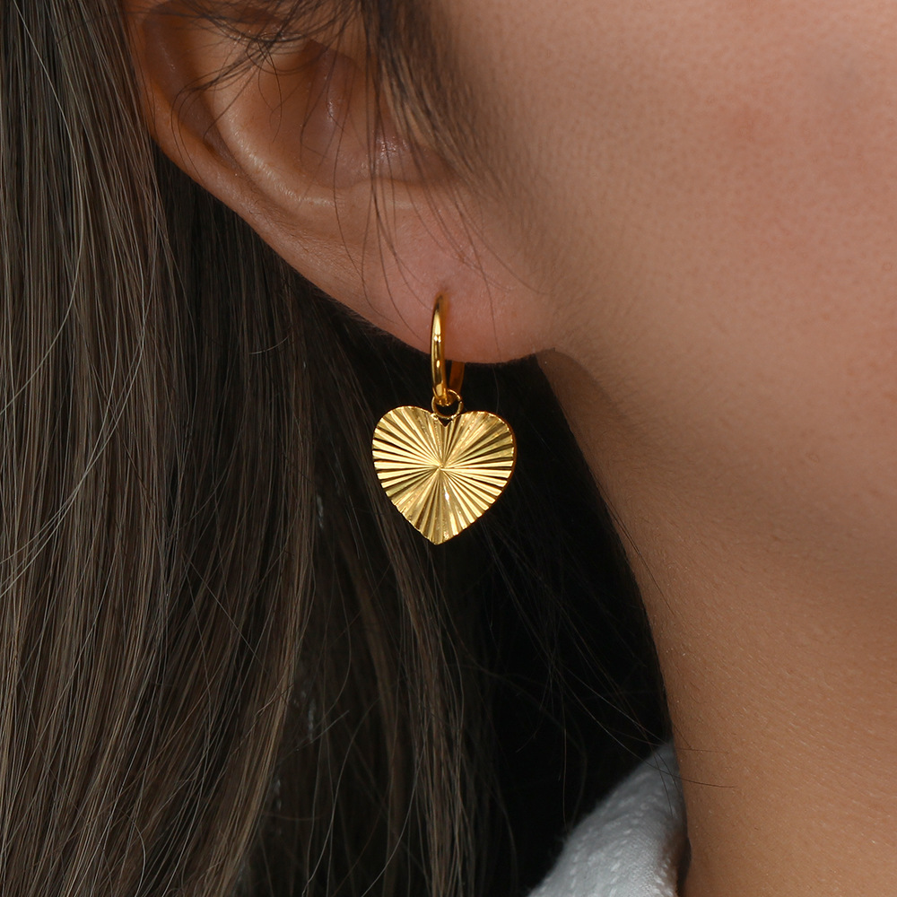 Color: Stripe Pattern Half Round Stud Earrings, Engraved Stripe Pendant Earrings - Round, Engraved Stripe Pendant Earrings - Flowers, Engraved Stripe Pendant Earrings - Heart, Engraved Stripe Pendant Earrings - Rectangular