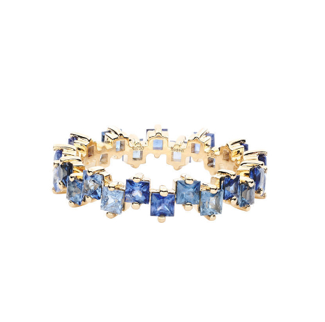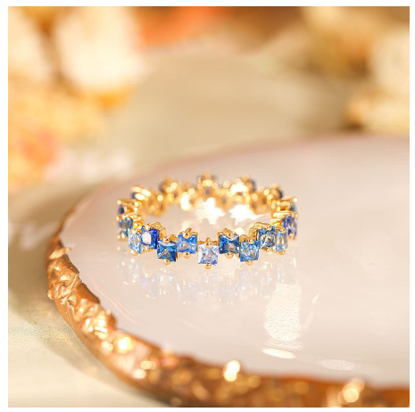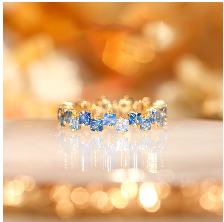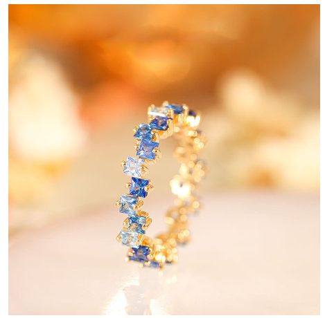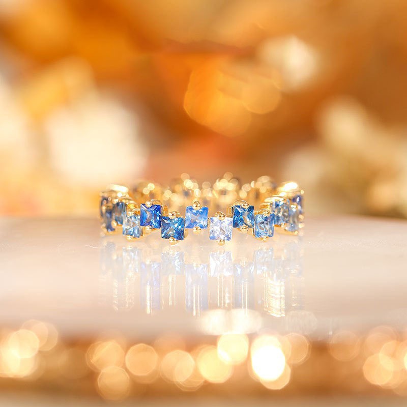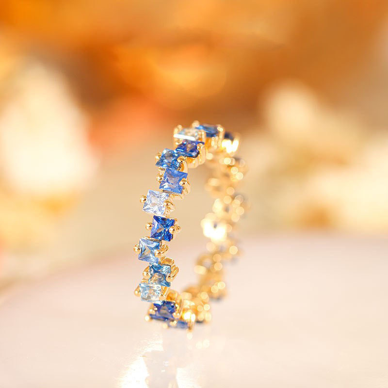 18K Gold Womens Ring Inlaid With Colorful Anti-blue Sapphires