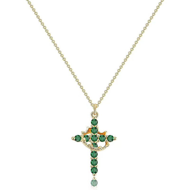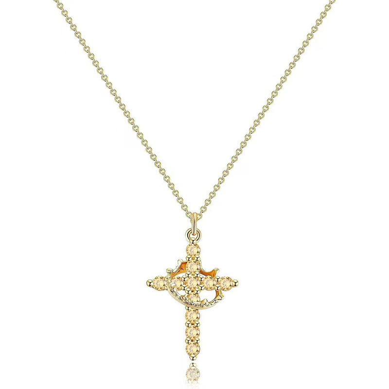18K Real Gold Plated Copper Cross Necklace With Zircon Stylish And Minimalist Design