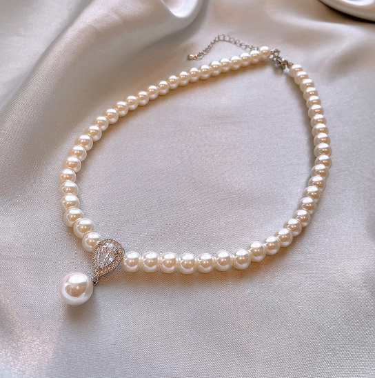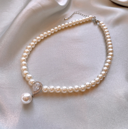Color: #42 White – 8mm – Shi’s Pearl Zircon Waterdrop Necklace (8mm);