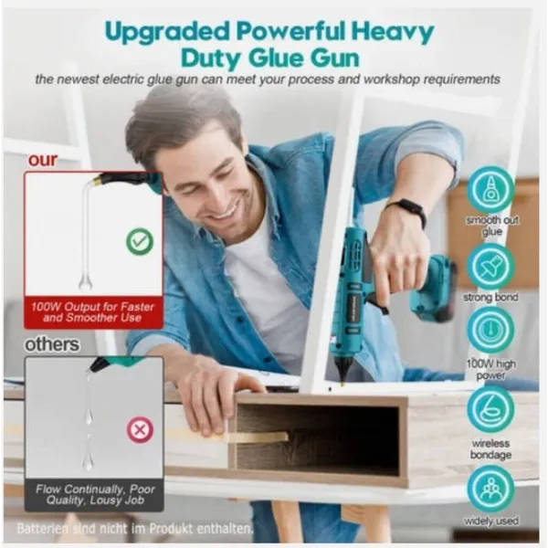 18V Cordless Hot Melt Glue Gun With Lithium Battery, Makita DeWalt Style For Home DIY Crafts, 11mm Glue Stick Compatible, Includes 10 Glue Sticks (Bare Tool)