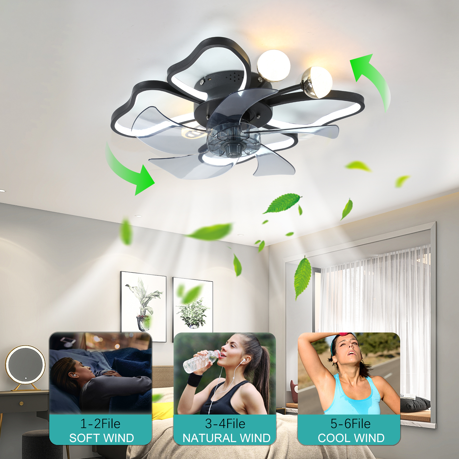 Its wide fan blades ensure adequate air circulation, bringing fresh air into the room and making you feel comfortable even in the hot summer. The timer function offers two timing options - 1 hour and 2 hours - to help you create a better sleep environment before bedtime and automatically turn off the ceiling fan before going to bed, allowing you to sleep peacefully. This lightweight ceiling fan is not only easy to install but also offers comfort and convenience, making your home life even better. The LED light has excellent brightness, with a total power of 24W. The color temperature can be adjusted between 3000K, 4500K and 6000K, easily creating the ideal indoor lighting atmosphere.