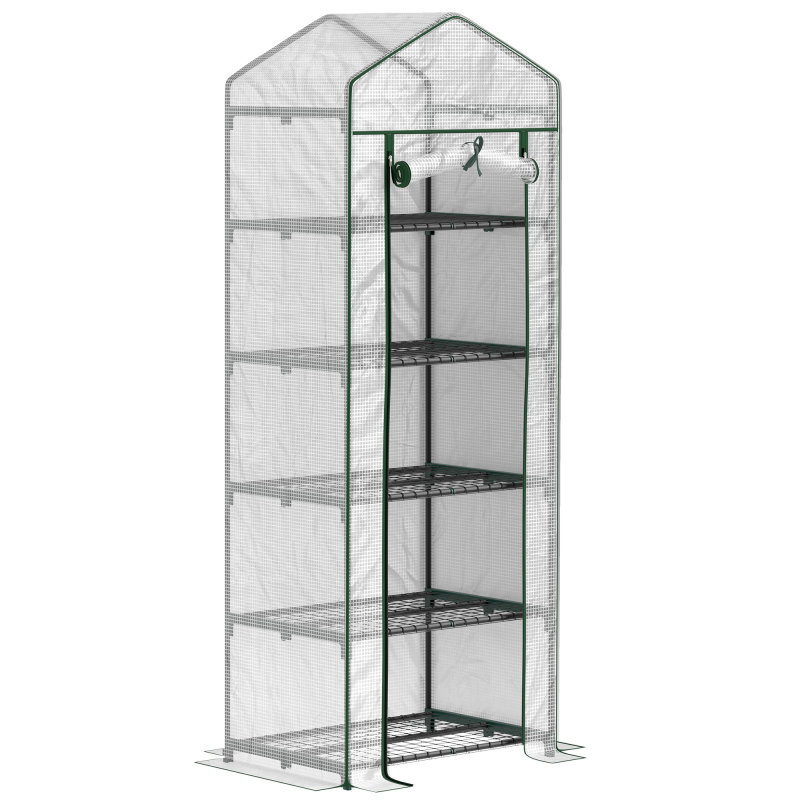 This 193cm greenhouse is made for the smaller places - whether flat balconies, front porches or a corner spot in your home. The PE cover creates a safe shelter from outer elements. It comes with a roll-up door to get inside easily. Five metal shelves inside to give you space to organise inside. For all spaces large and small, you can start your greenery journey straight away with this growhouse.