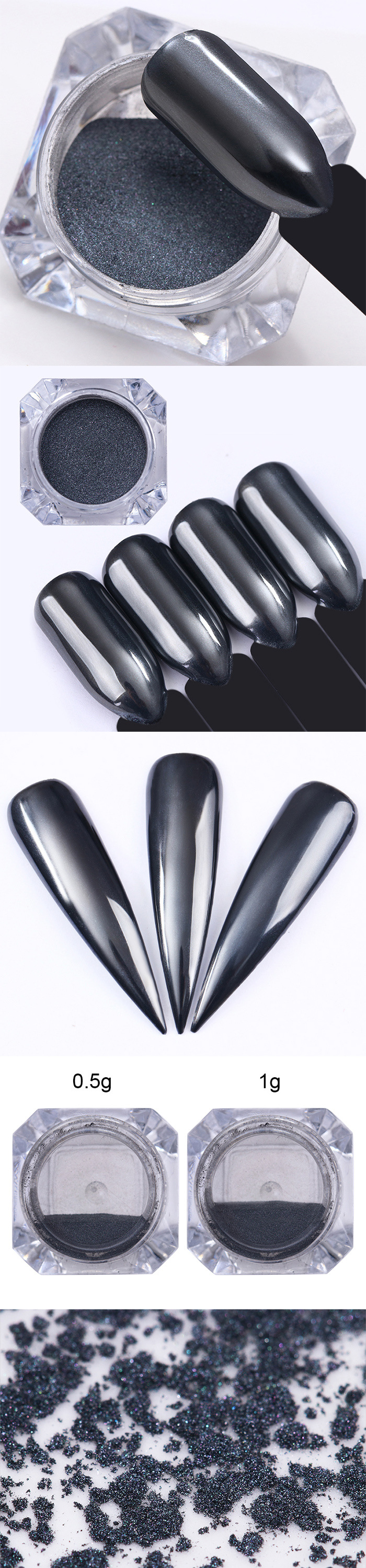 1g Diamond Bottled Pure Black Electroplating Powder Mirror Glitter