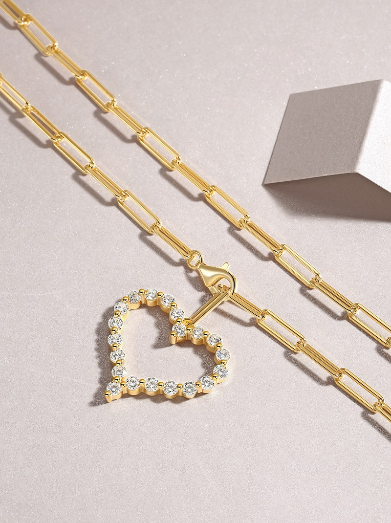 1Heart Wish - Fashionable Diamond Jewelry, Silver Jewelry, 13g Pure Silver Jewelry, Set With Small Moissanite S925 Sterling Silver And Gold-plated Prohibit Tk Sales