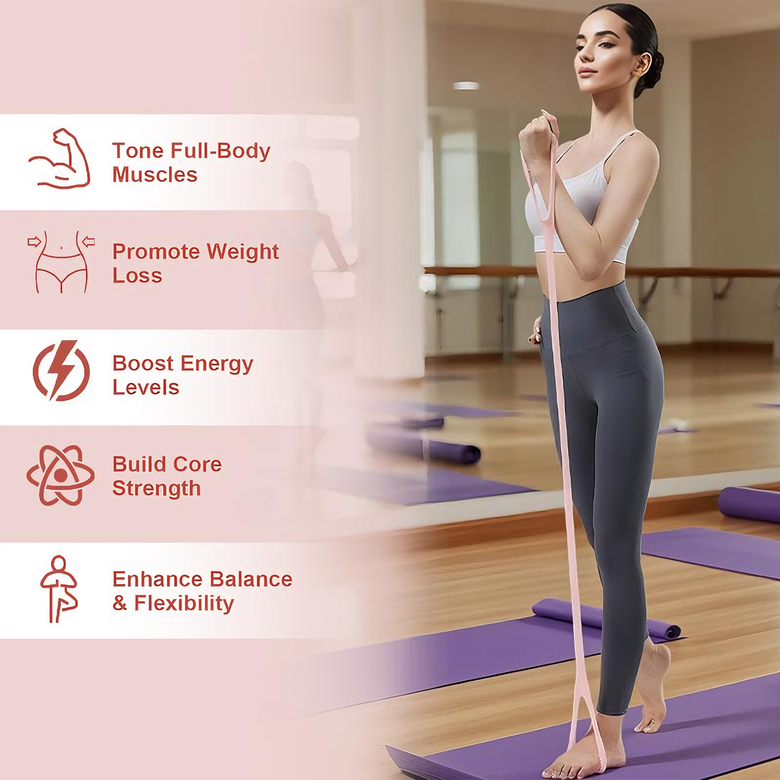 Elastic Fitness Stretching Rope: This 8-shaped silicone yoga resistance band is perfect for back, waist, and arm exercises. It offers versatile training options for home, gym, and outdoor workouts.