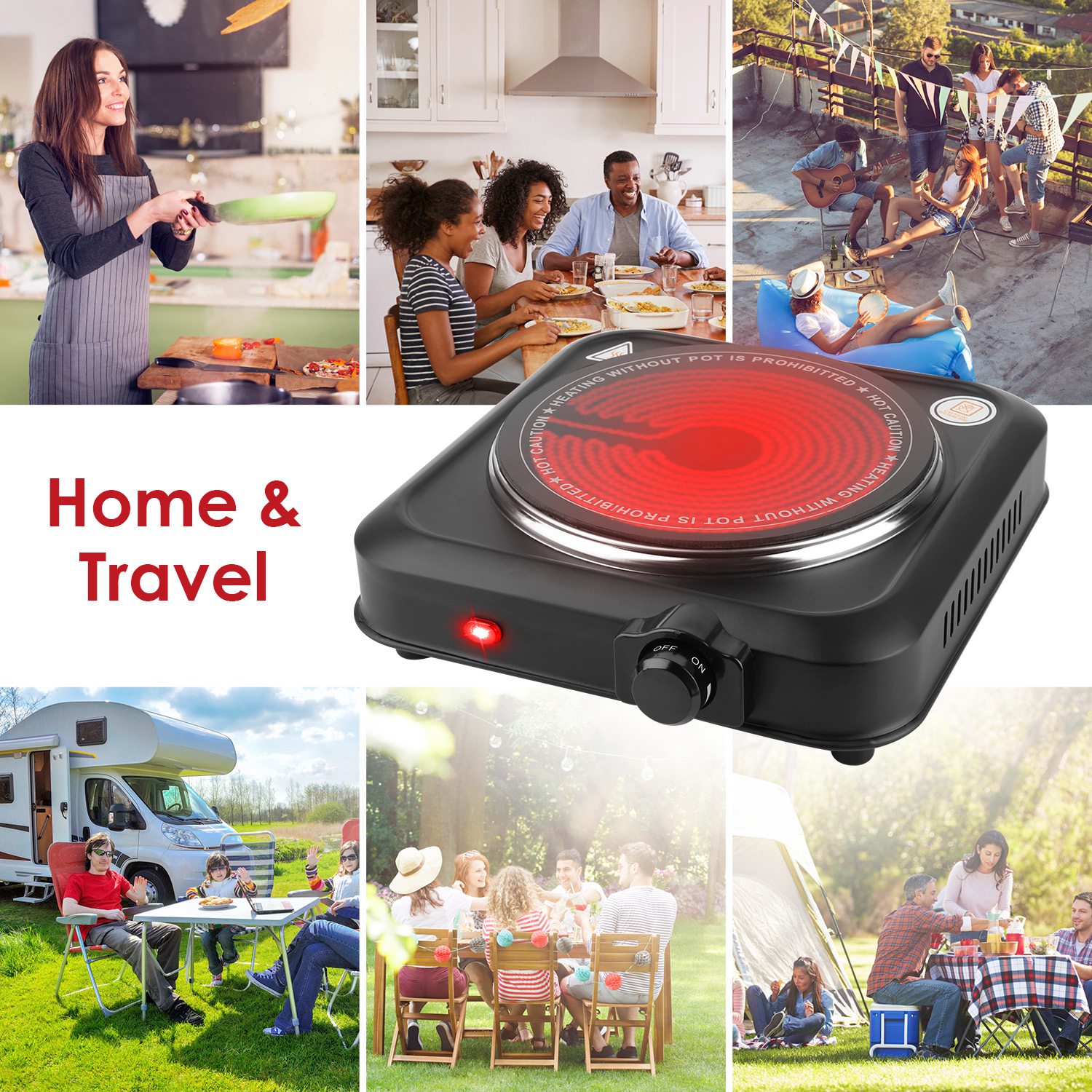 • *Thermostat Temp Control & Easy Cleaning*:The hot plate will auto shut off and the indicator light in front of the enclosure will be extinguished when the preset/desired temperature is reached. When it is lower than the temperature you set,the light turns red to indicate the cooktop is warming or heating. Just simply wipe the non-electrical parts with a damp sponge or half-wet cloth for easy cleaning after cooling down completely and plug removed.