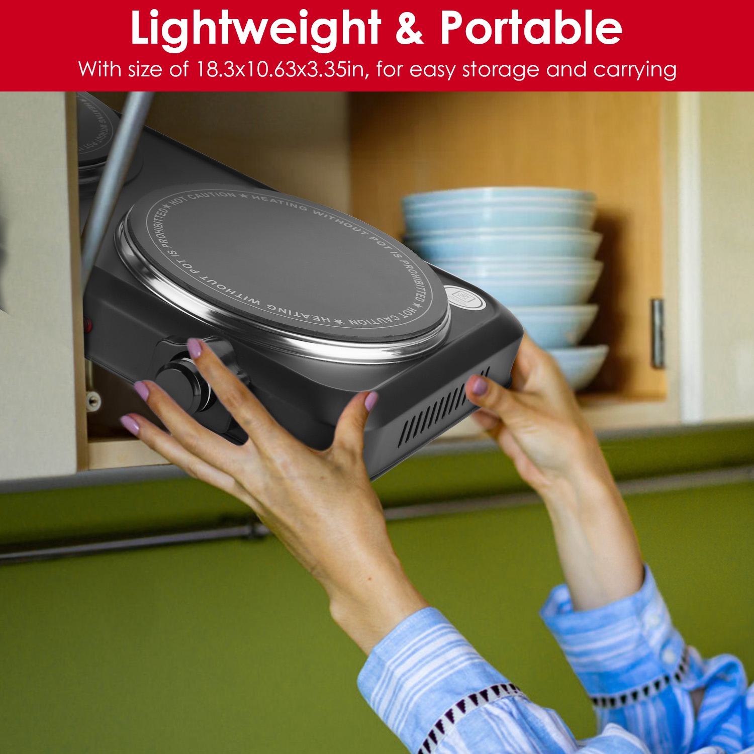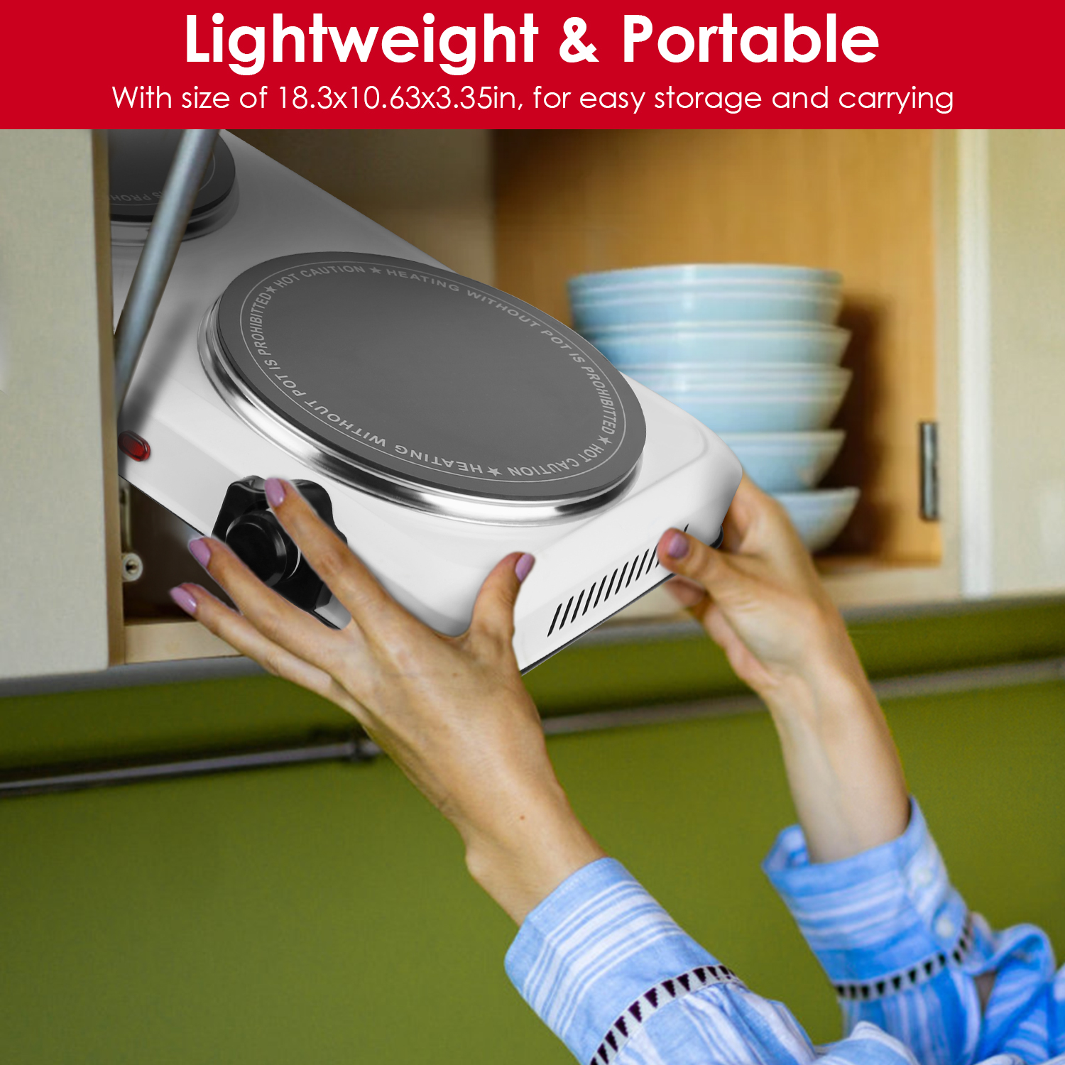*Thermostat Temp Control & Easy Cleaning*:The hot plate will auto shut off and the indicator light in front of the enclosure will be extinguished when the preset/desired temperature is reached. When it is lower than the temperature you set,the light turns red to indicate the cooktop is warming or heating. Just simply wipe the non-electrical parts with a damp sponge or half-wet cloth for easy cleaning after cooling down completely and plug removed.