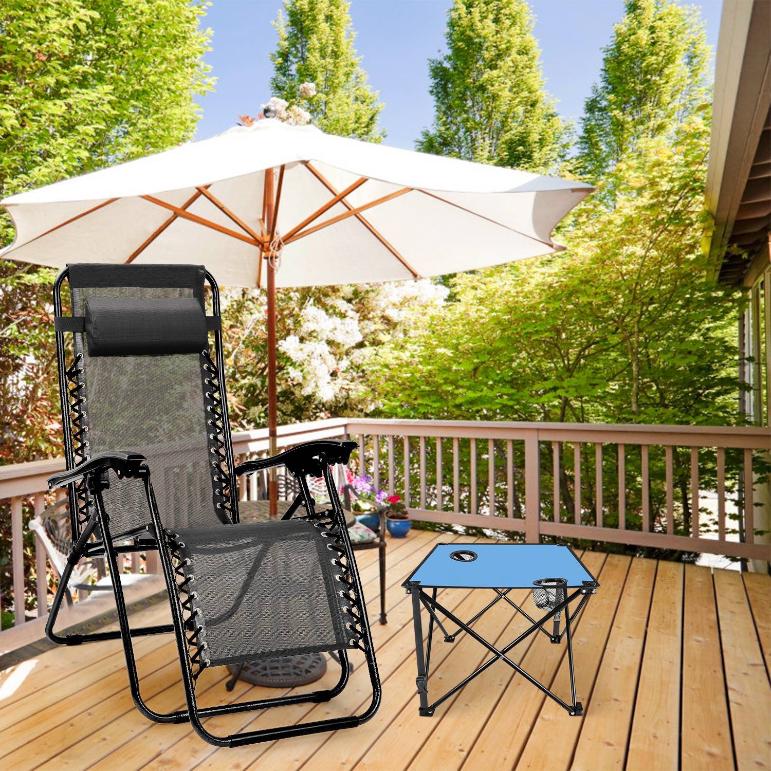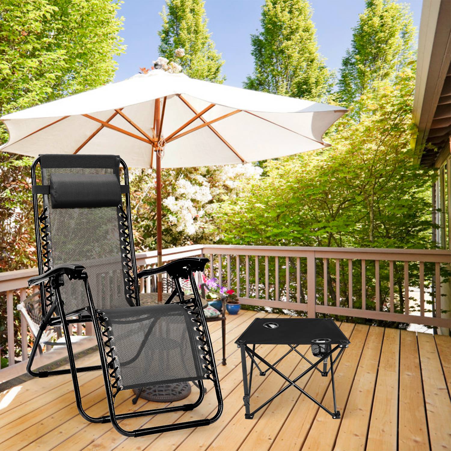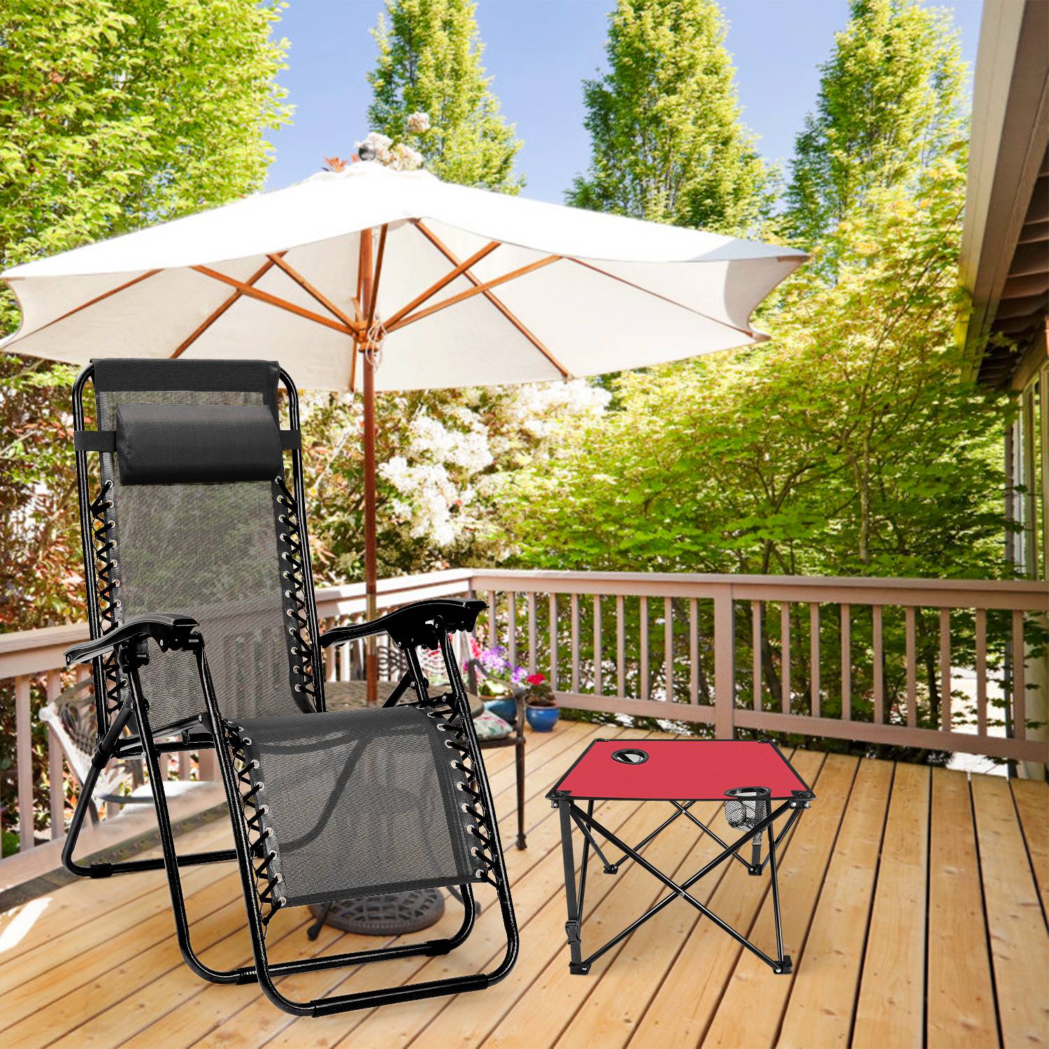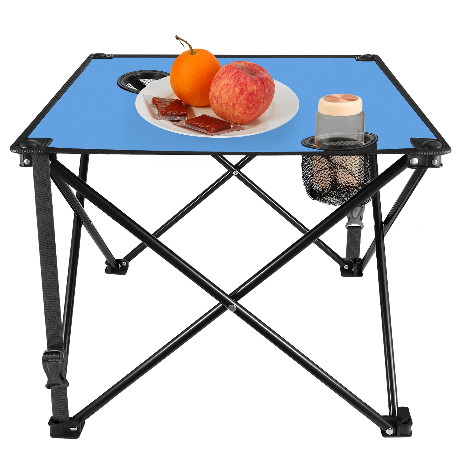 *CONSIDERATE CUP HOLDER DESIGN*:Equipped with two integrated cup holders(2.95in diameter) featuring mesh pockets,the table provides dedicated spaces for beer bottles,beverage bottles,water bottles,and more,helping keep drinks secure and within reach.