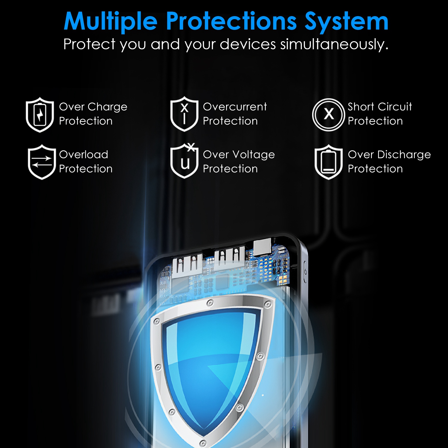 *Safe & Secure*:The embedded smart chip provides under-voltage,over-power,over-current,over-temperature,over-voltage,and short circuit protection,protecting your device automatically and extending life of battery.
