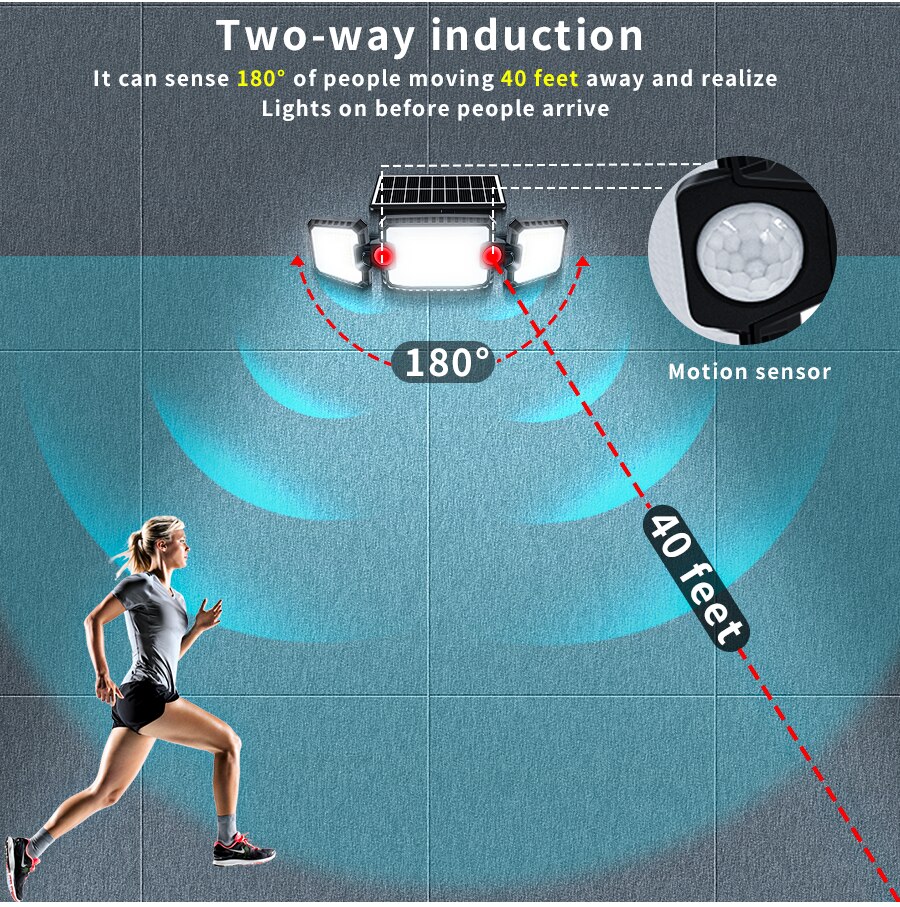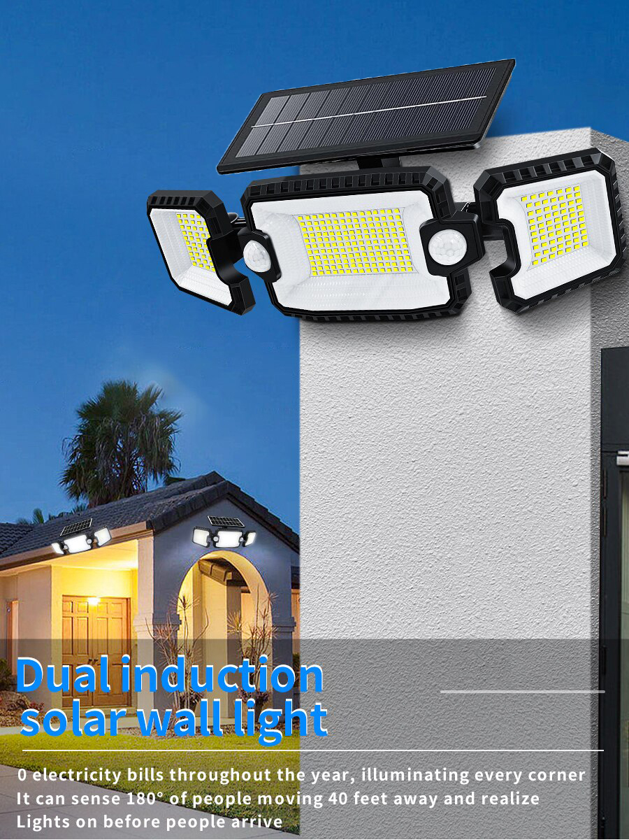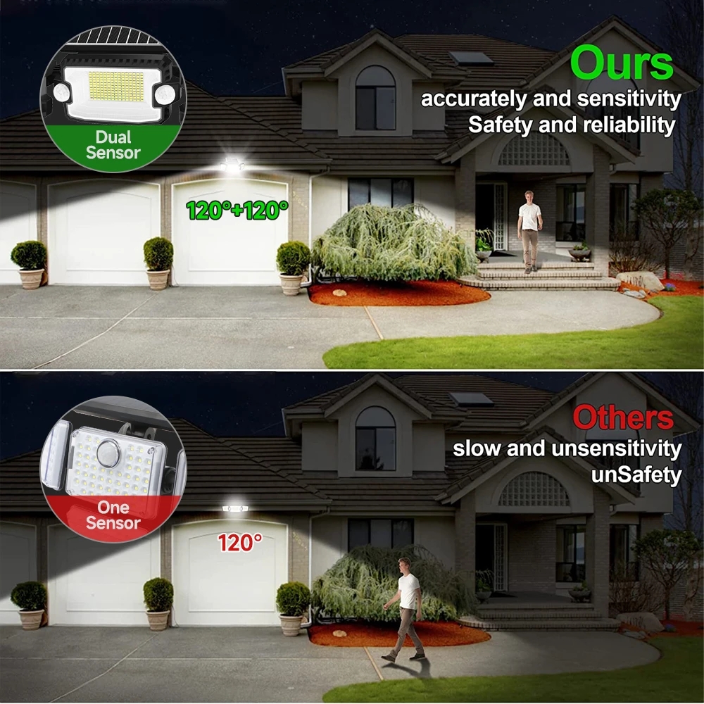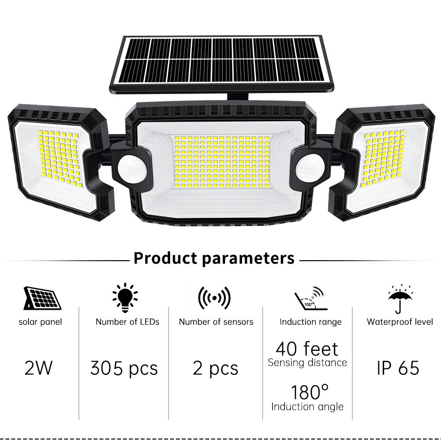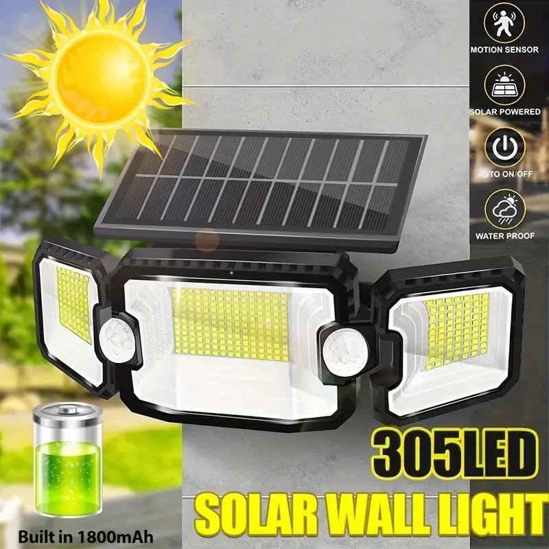 1pc 305 LED Solar Light Outdoor, Dual Induction PIR Motion Sensor Flood Light, Solar Power Wall Lam