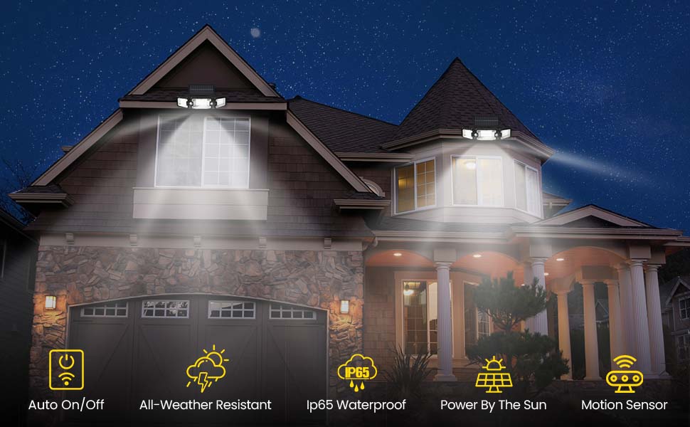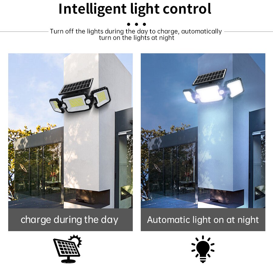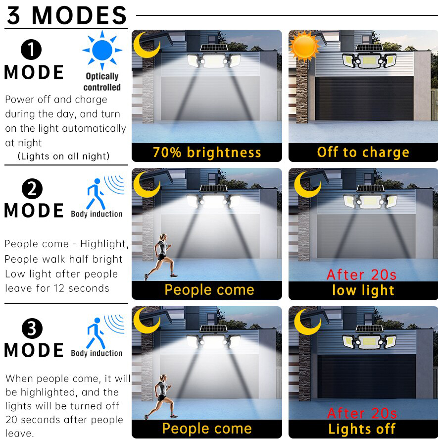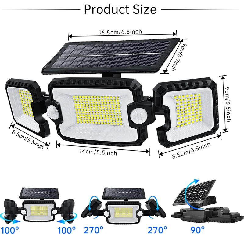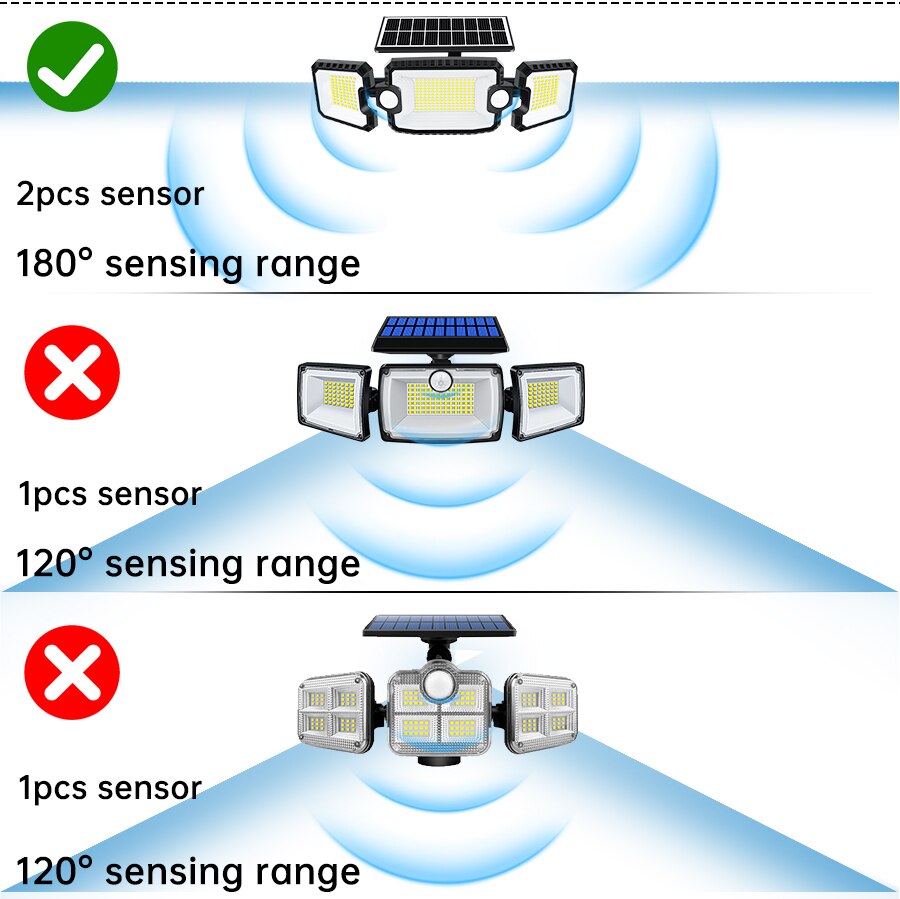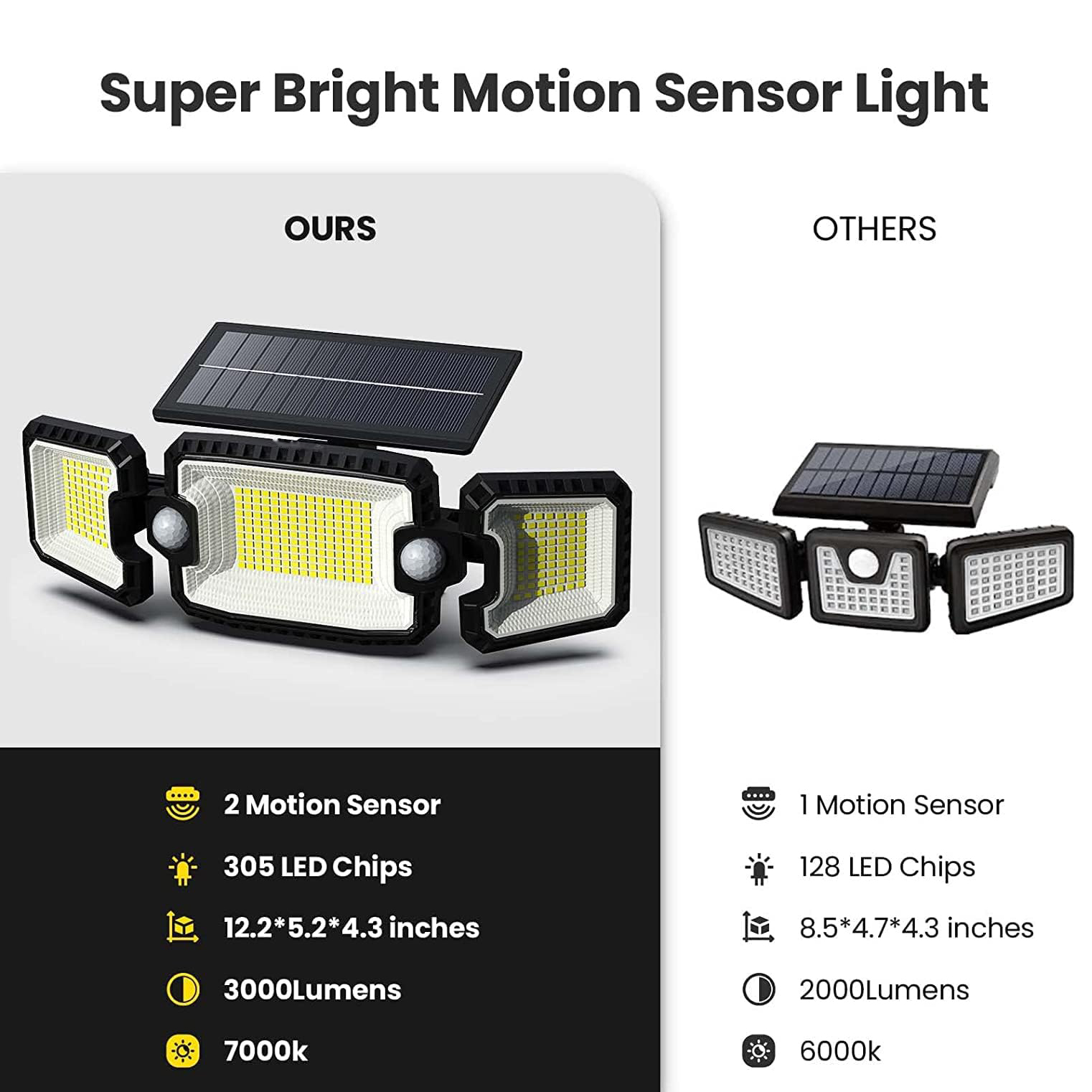 1pc 305 LED Solar Light Outdoor, Dual Induction PIR Motion Sensor Flood Light, Solar Power Wall Lam