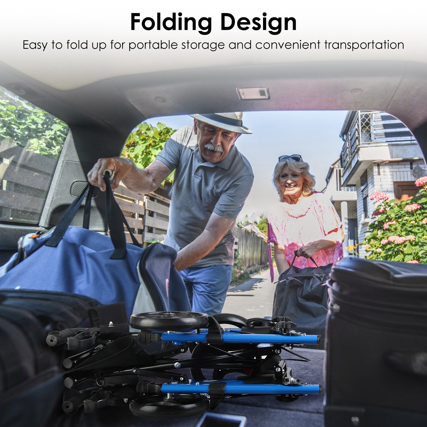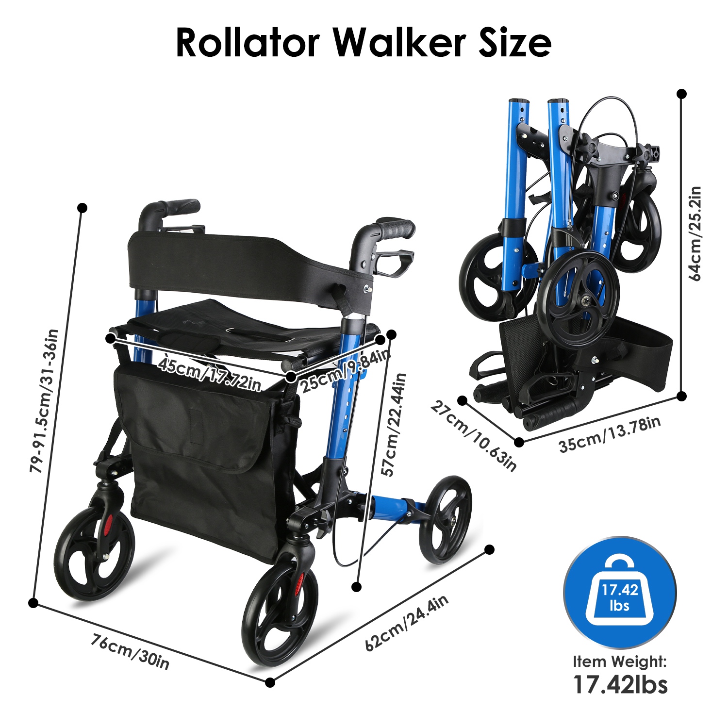 *Easy Assembly & Folding Design*:Simply unfold and assemble the wheels via the hand knobs to finish quick installation. When no in use,just fold up the walker in a compact size for space-saving storage.