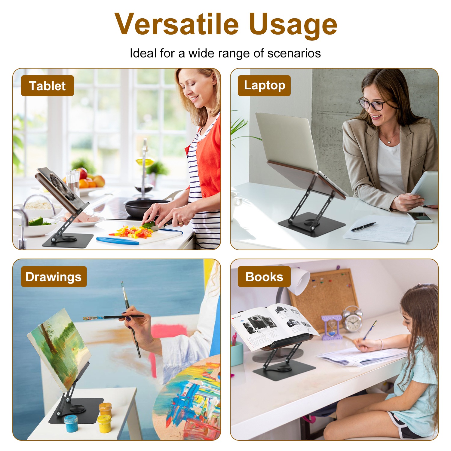 *Versatile & Practical Stand*:This height adjustable book holder is multifunctional,not only great to hold your novel,cookbook,or textbook for reading,but also suitable for holding your music sheet,drawings,tablet,laptop and so on when you're playing guitar, writing, drawing or working. Provides you with optimal comfort and convenience. Ideal for various settings, including study, classroom, library, music room, kitchen, office, and more.