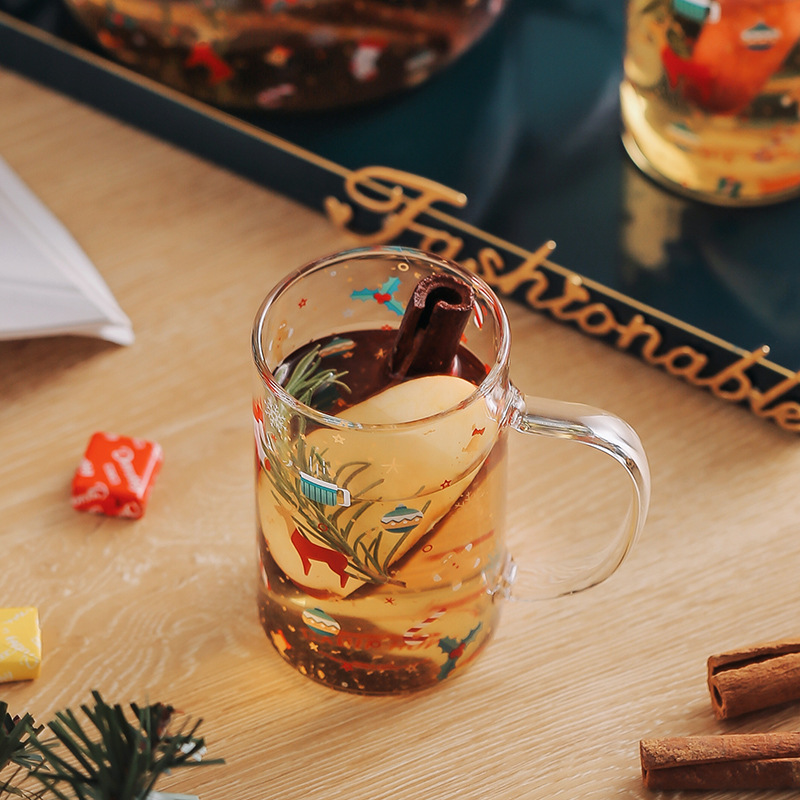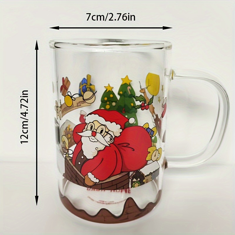 1pc Christmas Glass Home Drink Cup Tea Cup With Handle Water Cup Breakfast Cup High Temperature Resistant 300ml Glass