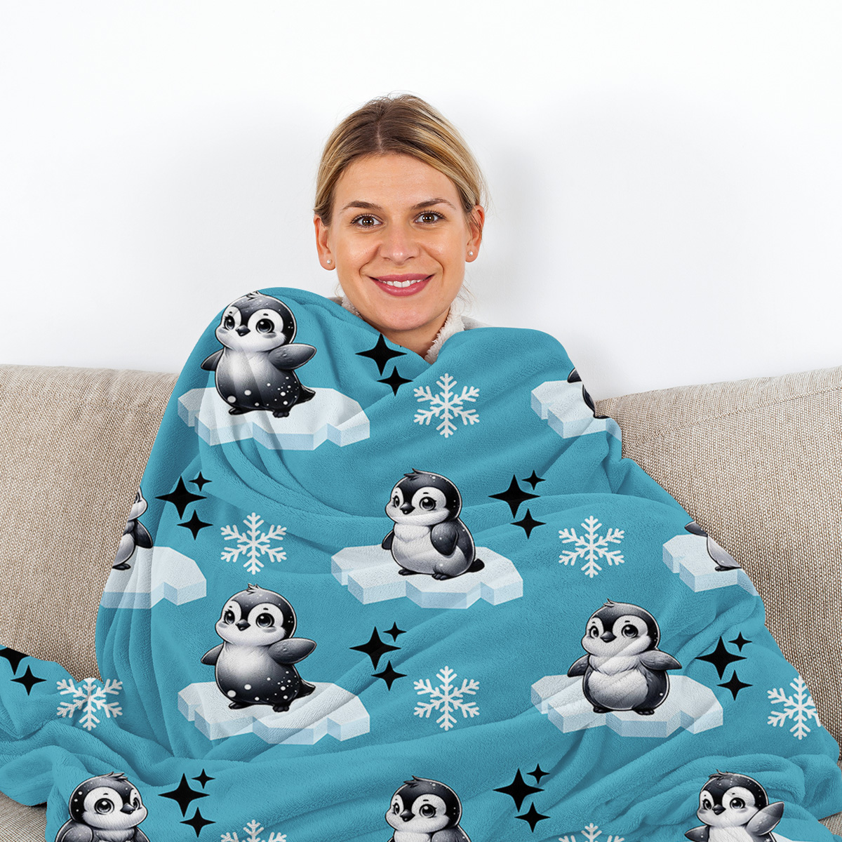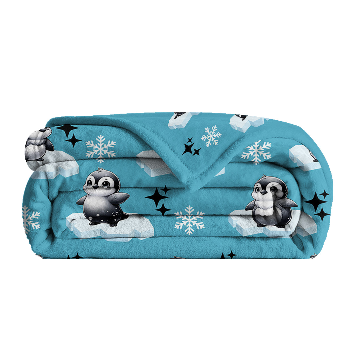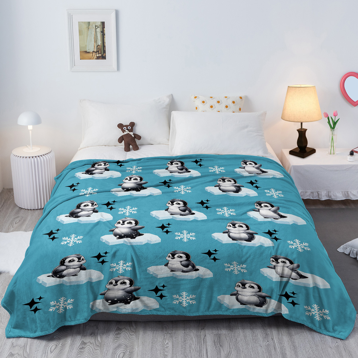 1pc Cute Penguin Snow Cloud Pattern Blue Winter Sofa Blanket Printed Flannel Blanket Comfortable And Warm Home Hugging Blanket Suitable For Bed Sofa Camping And Multi Scene Seasonal Use