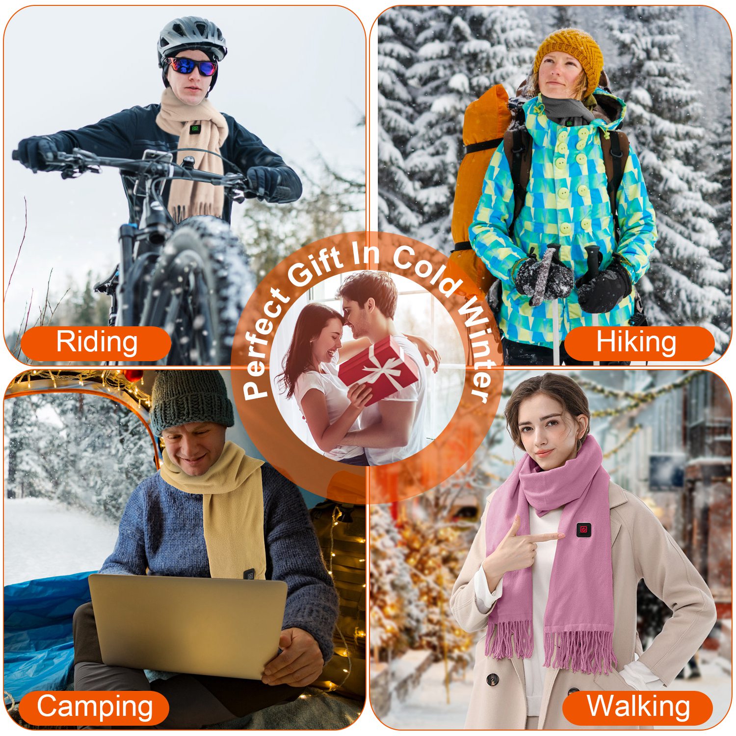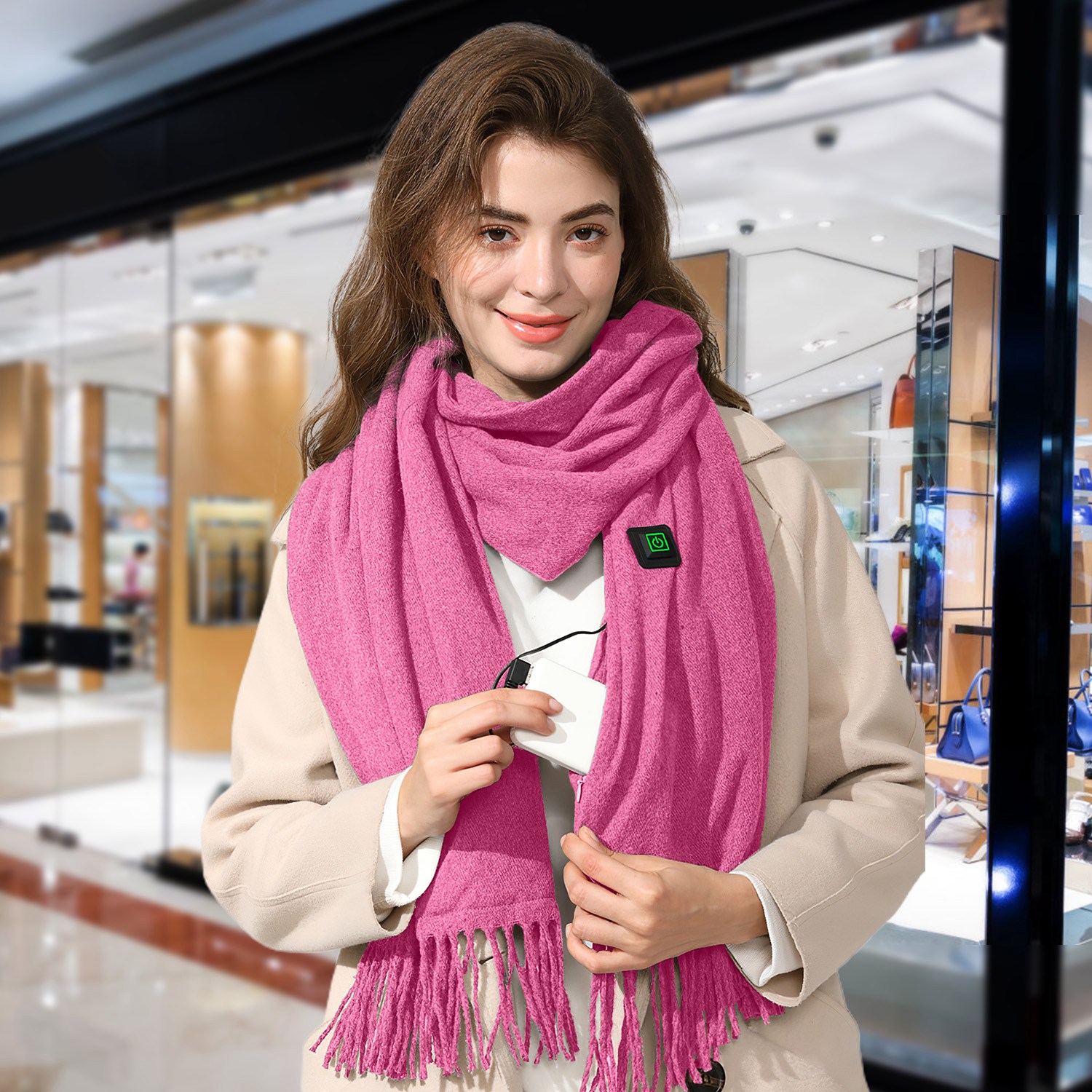 *USB Powered Heated Scarf*:Powered by a portable mobile power source(Not Included) via a USB cable,just put it into the hidden zipped pocket inside the scarf then you can keep warm with this heated scarf anytime anywhere!