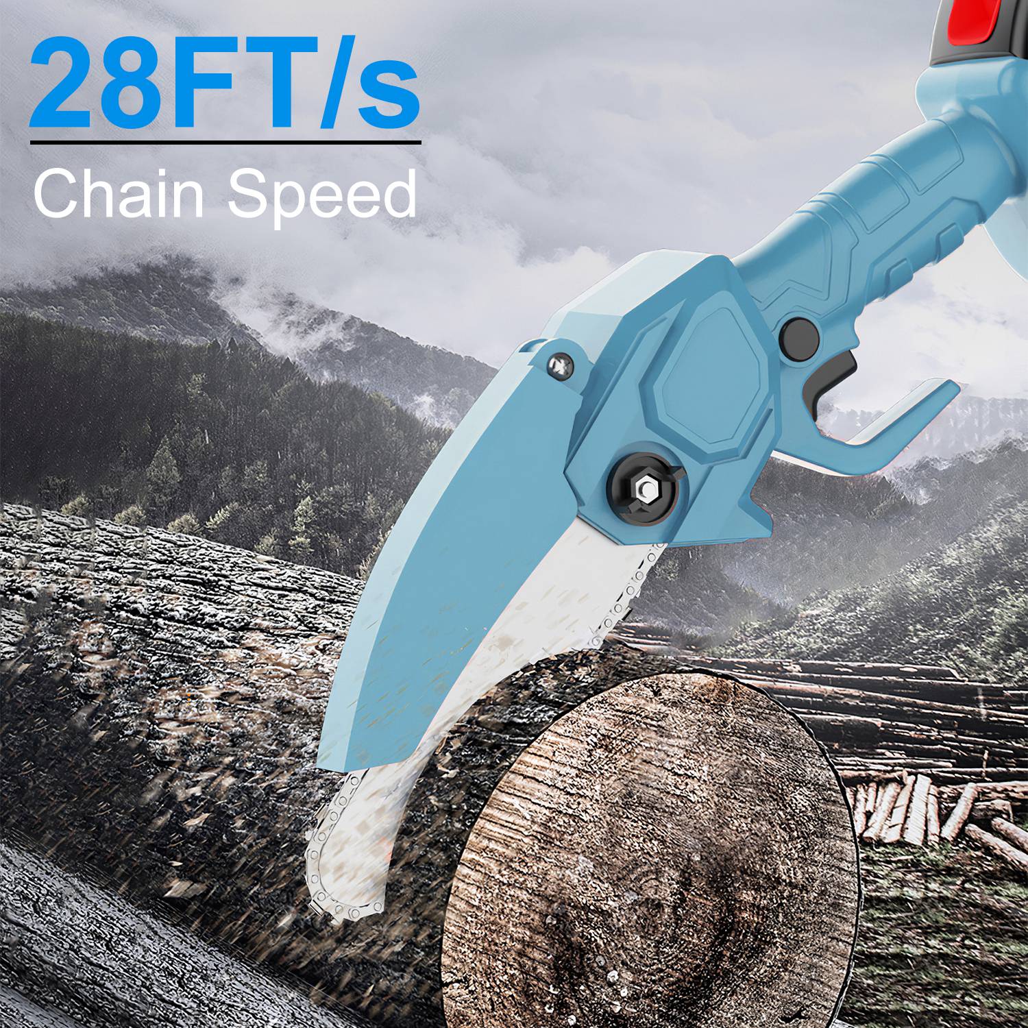 • *Powerful Cutter*:Our 4in/6in mini chainsaw with built-in great pure copper motor has max 20000RPM no-load speed and 28ft/s chain speed,which has an effective cutting performance. You can be confident in its ability to handle the yard work you need to do.