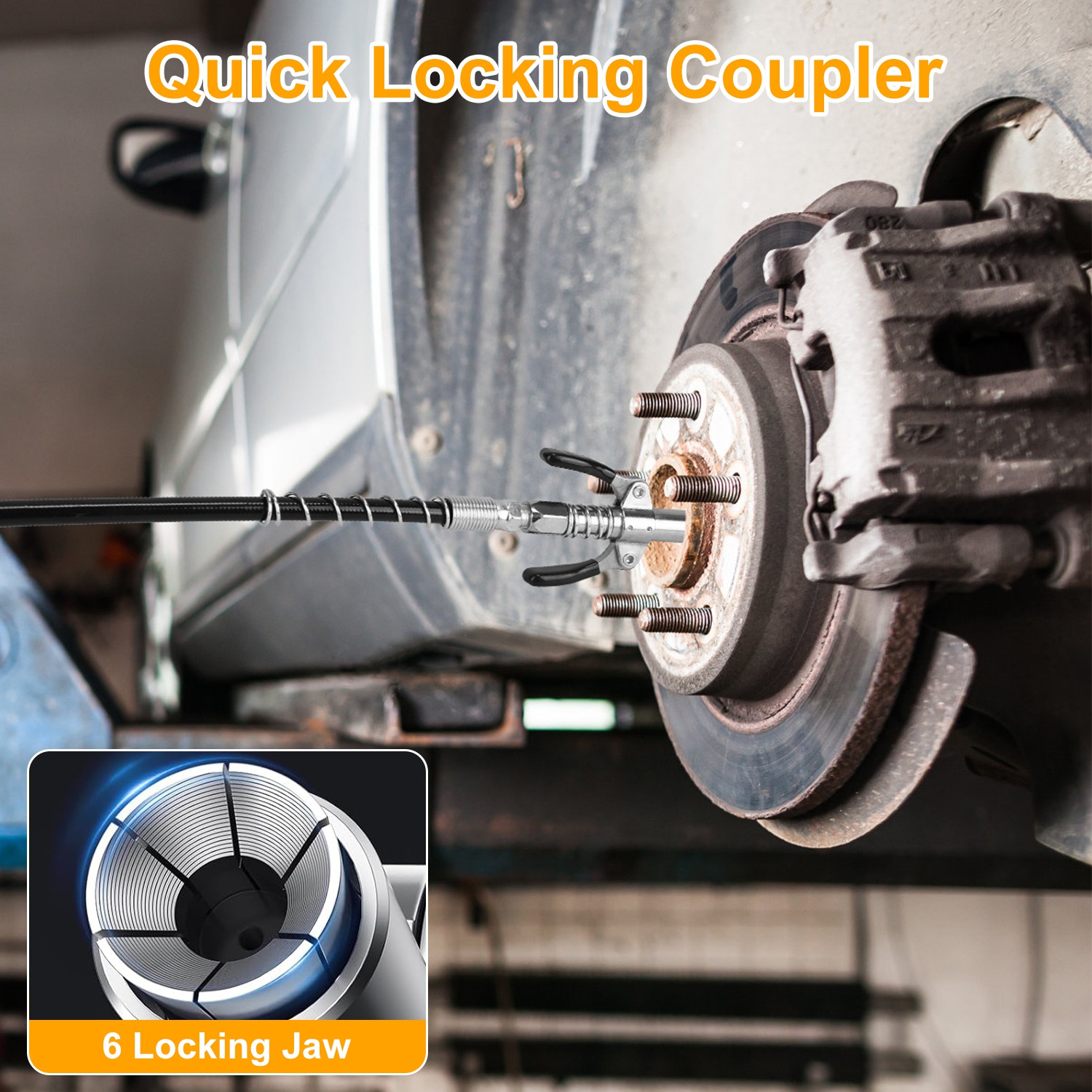 *Complete Grease Gun Kit*:Designed for high-efficiency and smooth lubrication,our comprehensive grease gun kit includes everything you need for work:a 11.8” flexible spring hose,2pcs jaw couplers and sharp nozzles,one grease injector needle,2 extension pipes,quick locking coupler and a clean grease cap.