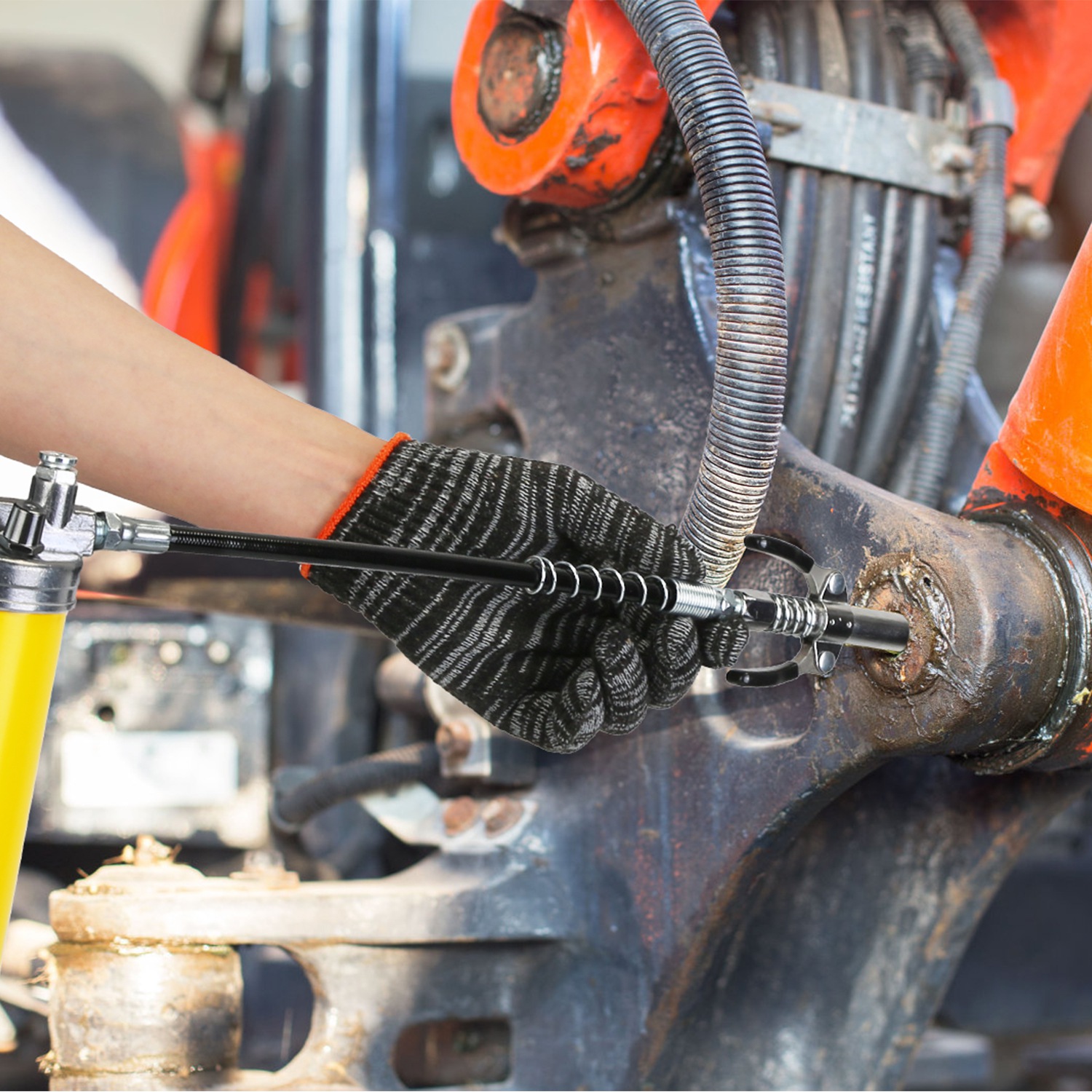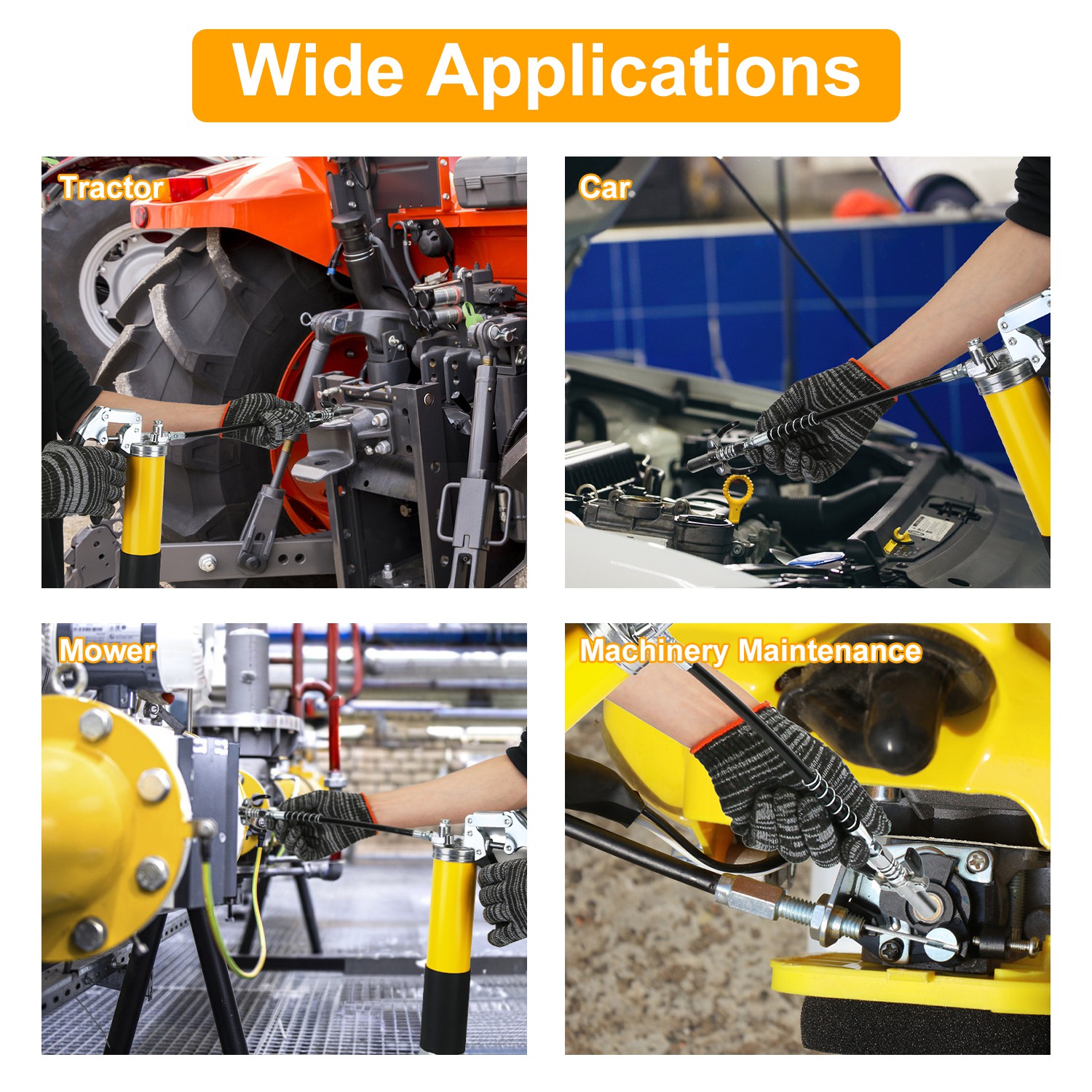 *Widely Use In Various Scenarios*:Whether you're maintaining machinery bearings,servicing marine boat trailer wheel hubs,lubricating chainsaws,tending to lawn mowers,or working on automotive axles,this grease gun kit guarantees smooth operation and long lasting performance.