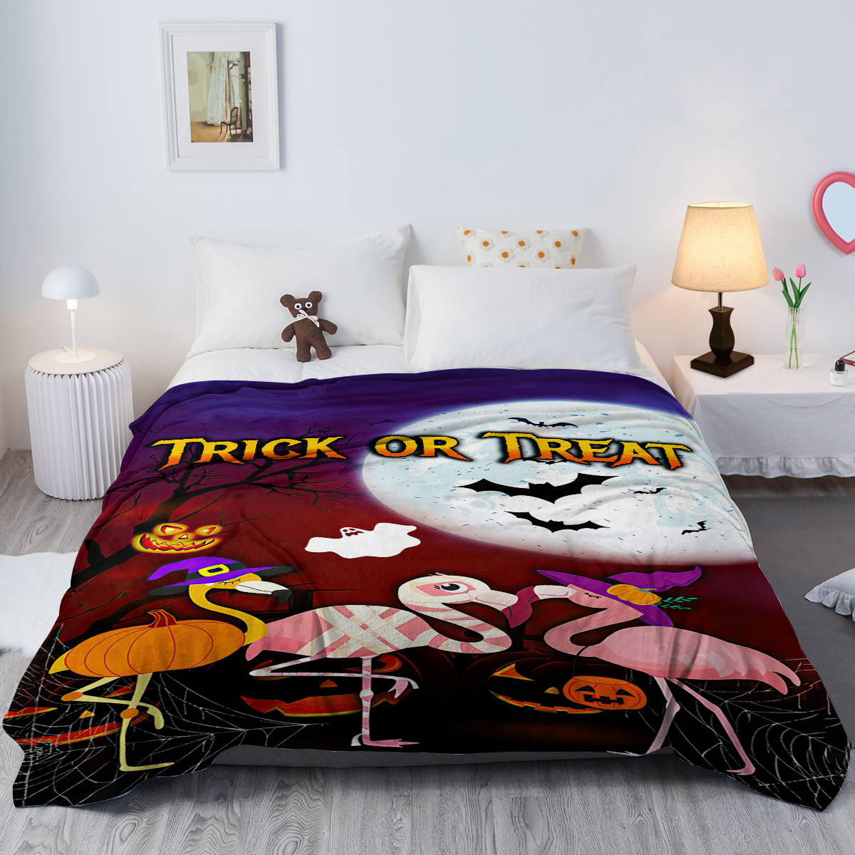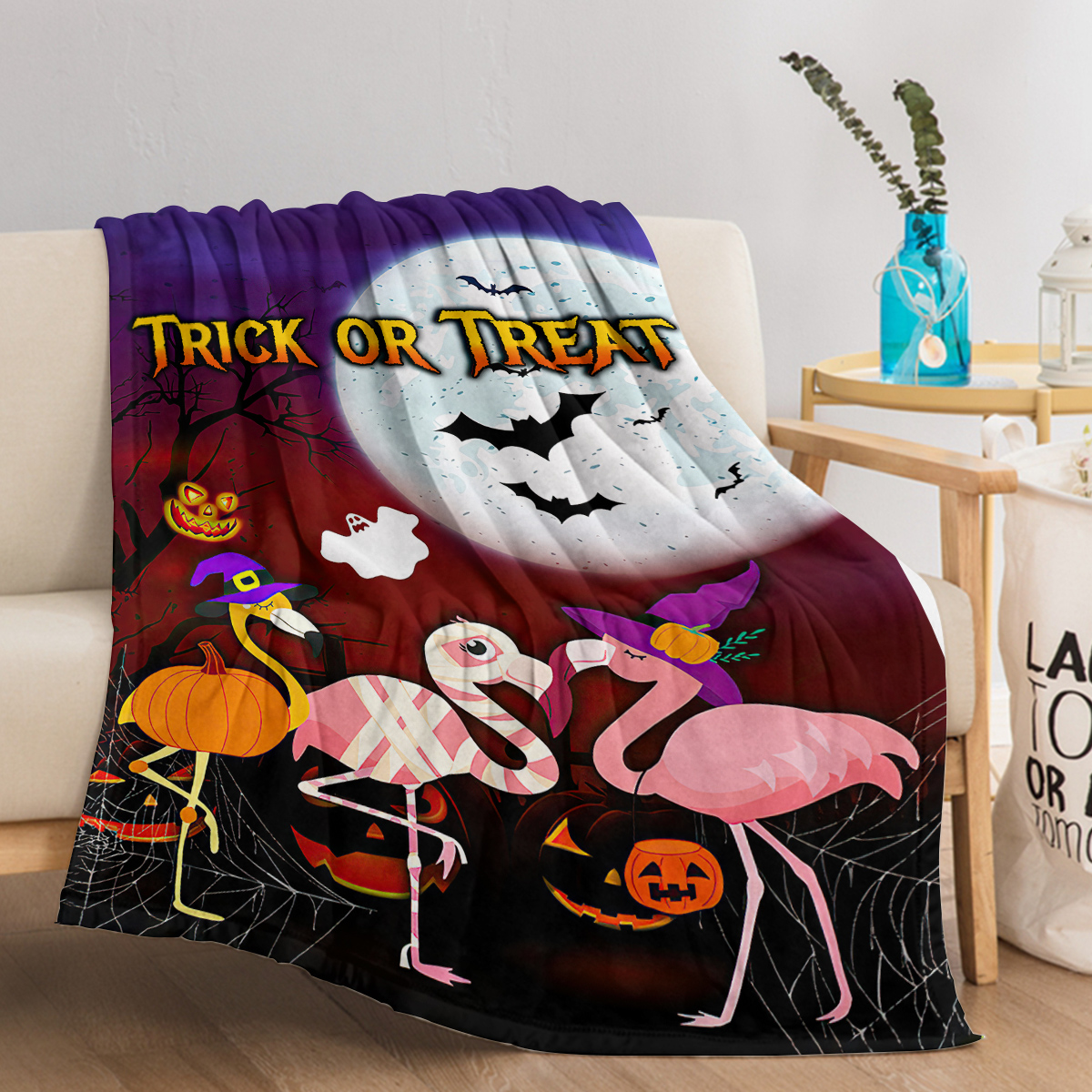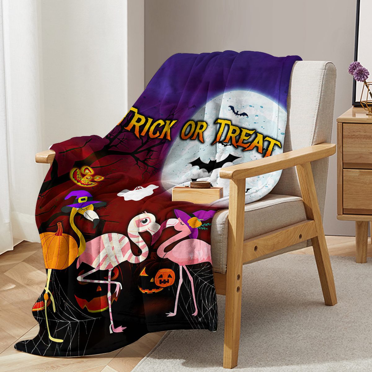 1pc Halloween-themed Pink Flamingo Print Flannel Blanket, Cozy And Warm For Home Use Bed, Sofa, Camping, And Multi-scenario Application Suitable For All Seasons