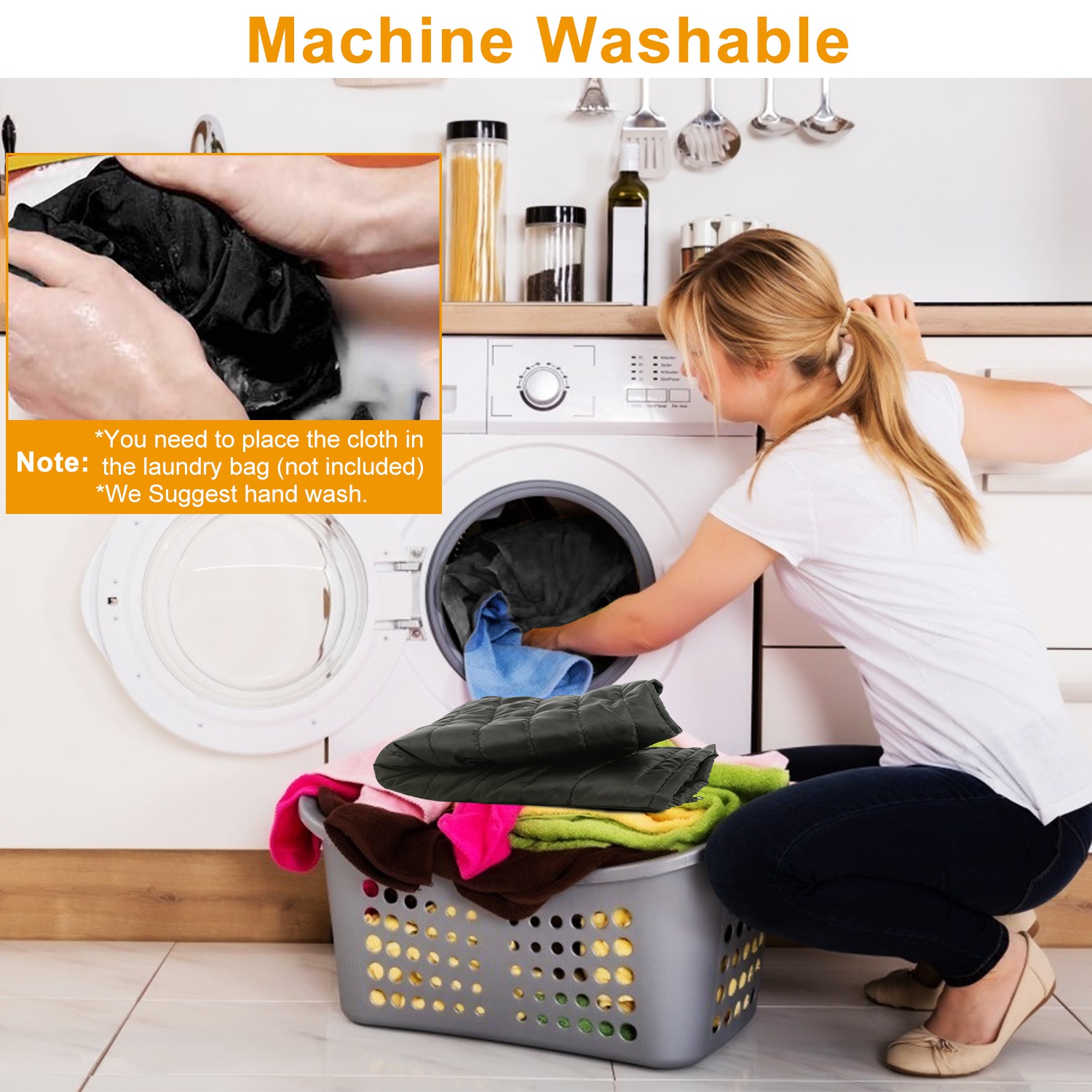 4. Hand wash is recommended. Wash bag should be used when you use machine wash.