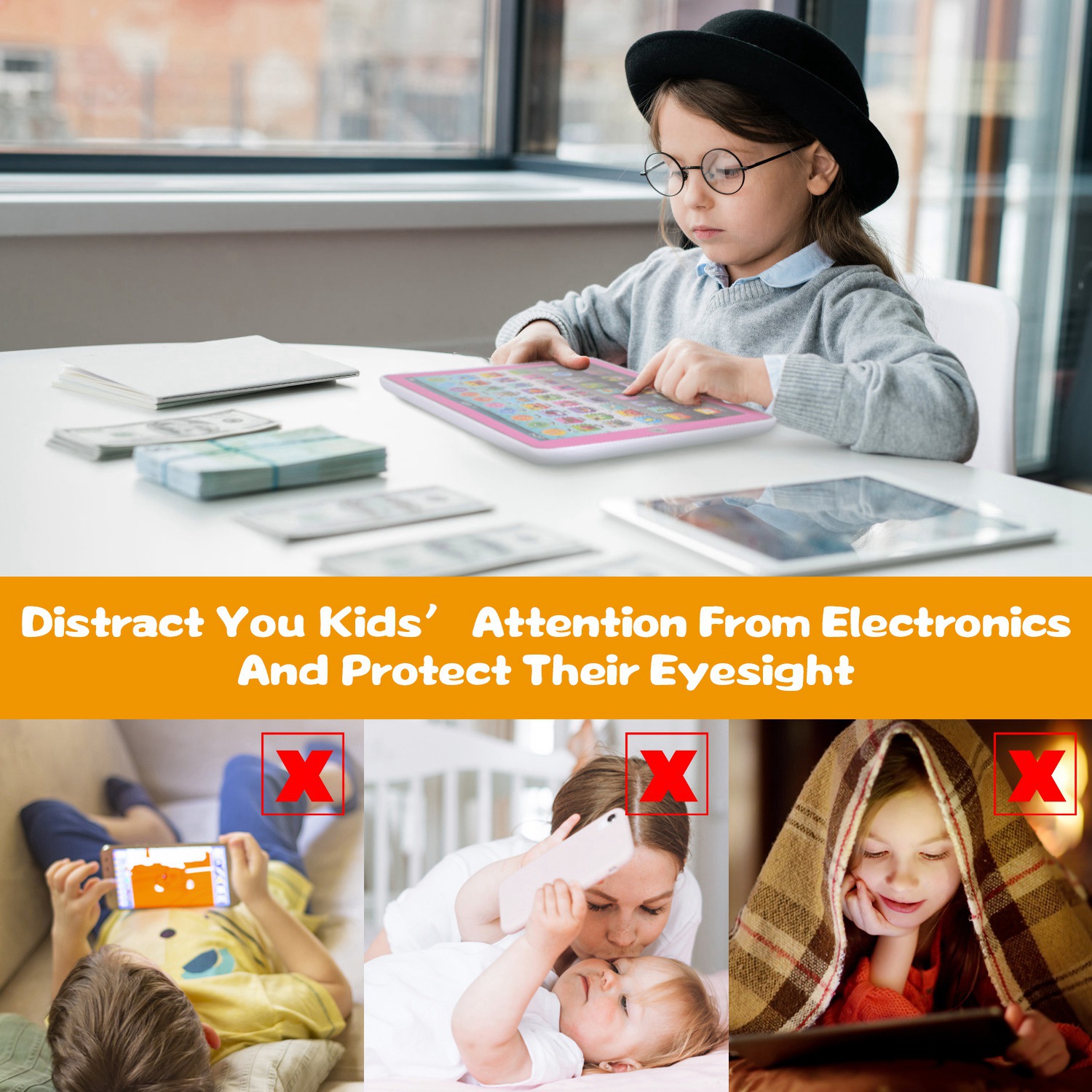 • *Keep Baby From Electronics*:Do your kids spend too much time on electronics? This tablet toy will distract their attention due to its highly simulated appearance and multiple interactive functions. It helps preschoolers develop name recognition and emergent literacy skills by showing a visual version of what they are hearing and providing interactive Q&A modes. An ideal choice for kids aged 3+!