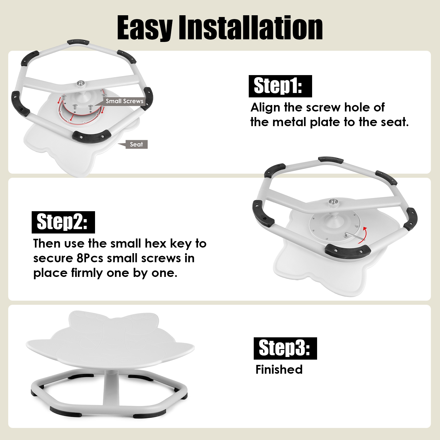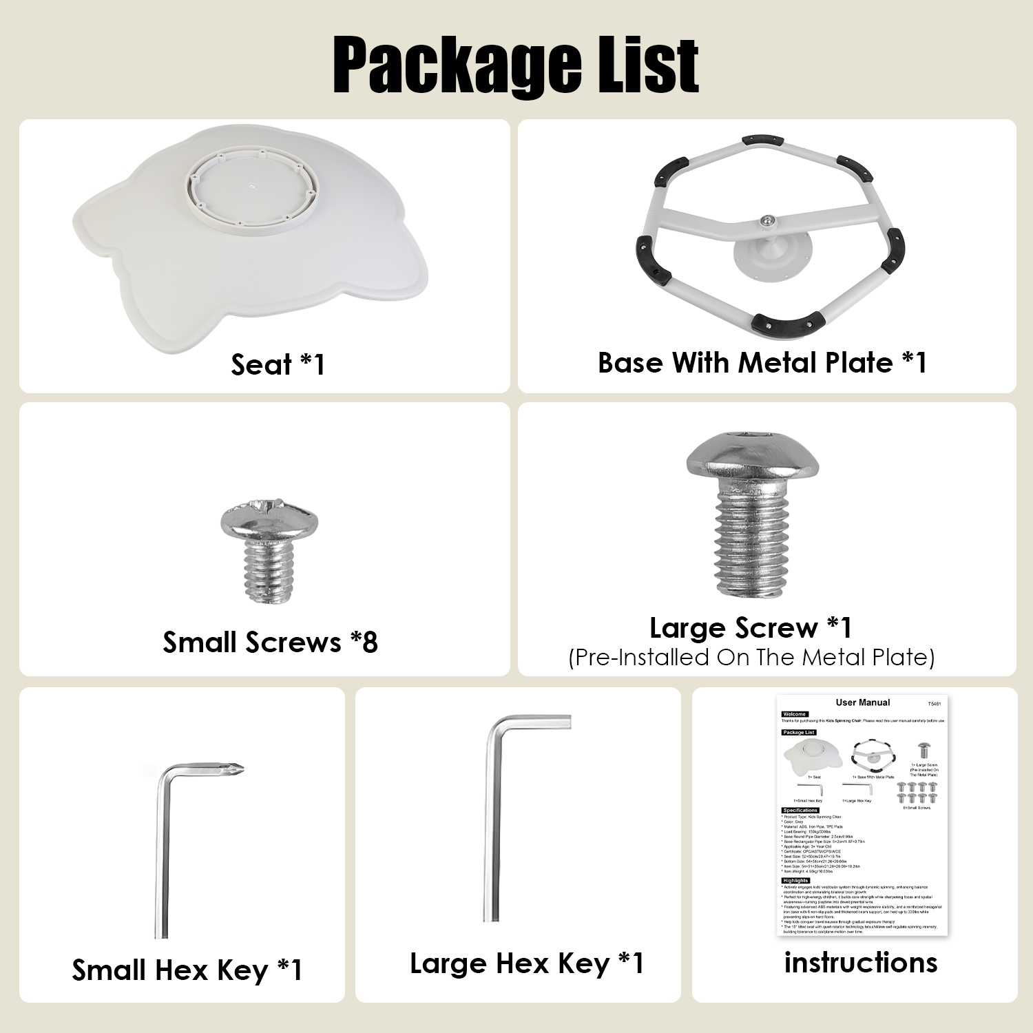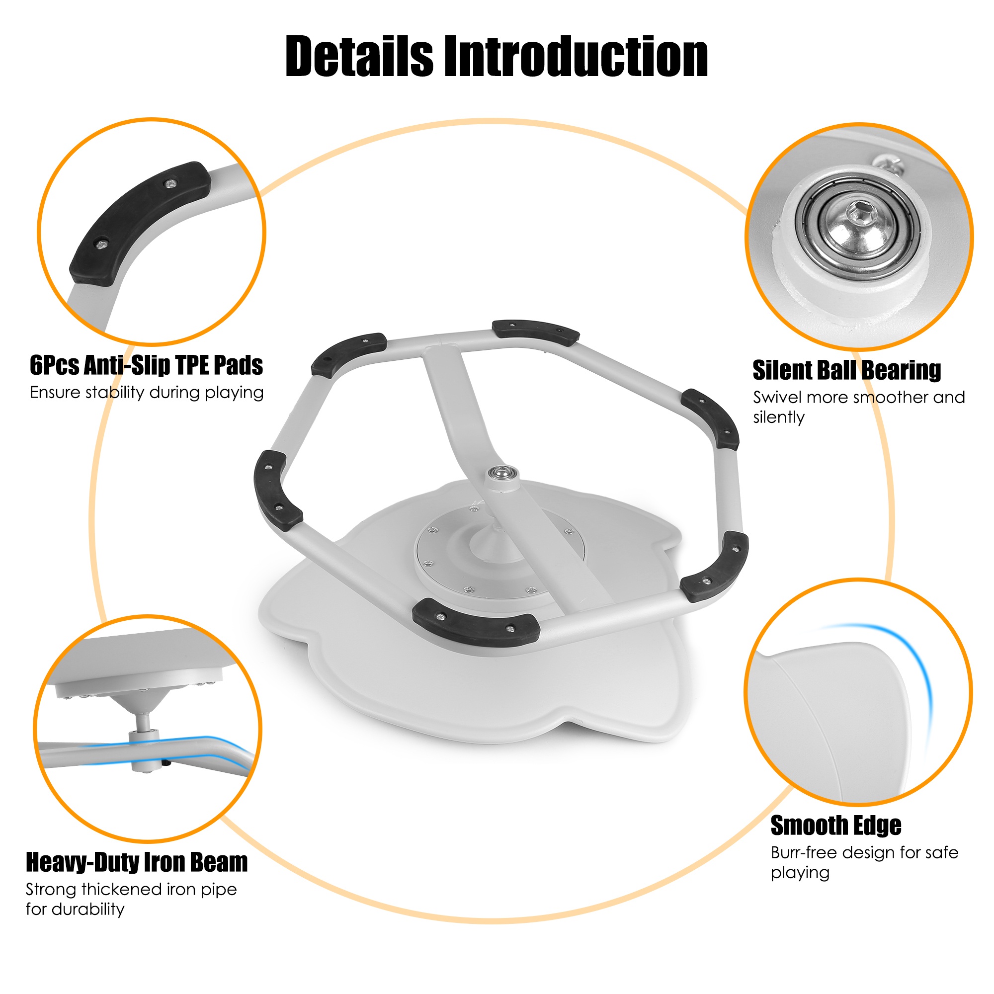 • *Max Safety Meets Smoother Spins*:Featuring advanced ABS materials with weight-responsive stability,and a reinforced hexagonal iron base with 6 non-slip pads and thickened beam support,this sensory spinning chair holds up to 330lbs while preventing slips on hard floors. Ultra-smooth ball bearing enables controlled rotations,paired with rounded edges and burr-free surfaces for worry-free play.